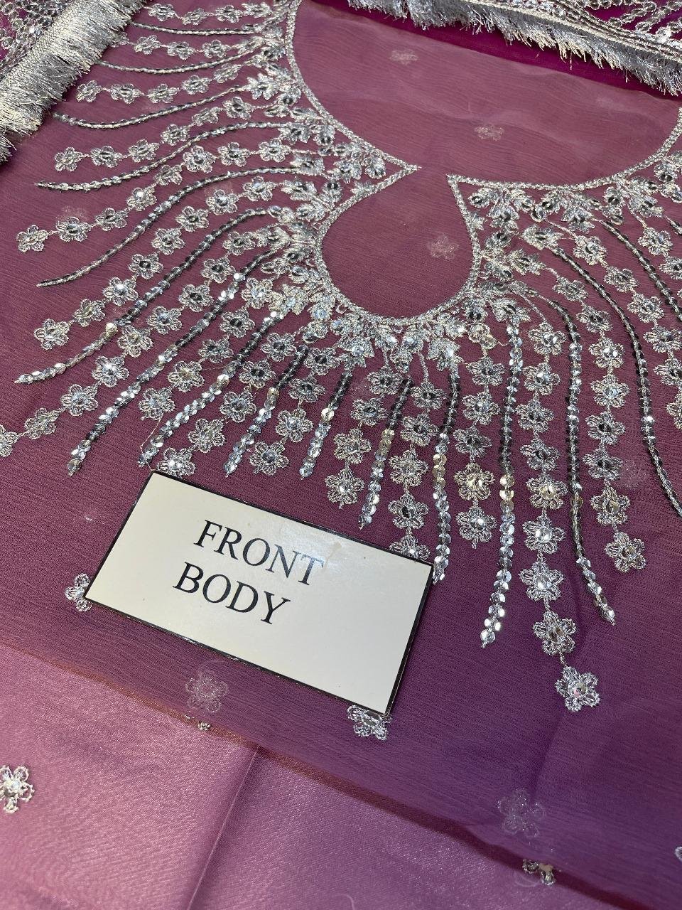 -Front and Back Ghair CHIFFON heavy embroidery 🧵 with Sequence and Zari Work