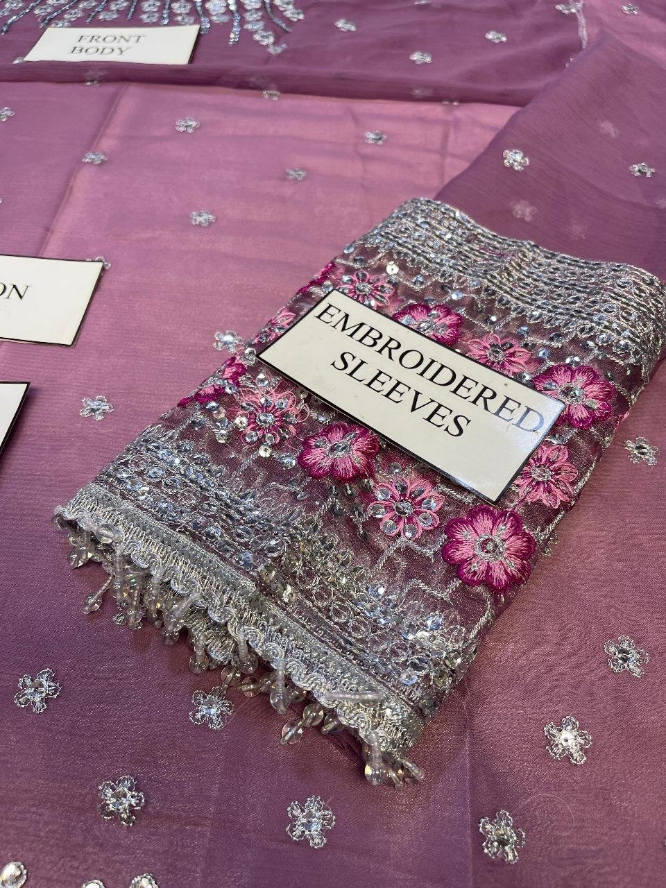 -Sleeves chiffon heavy embroidery 🧵 with Heavy Embroided Cuff PAtch