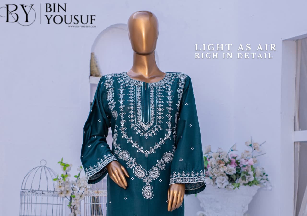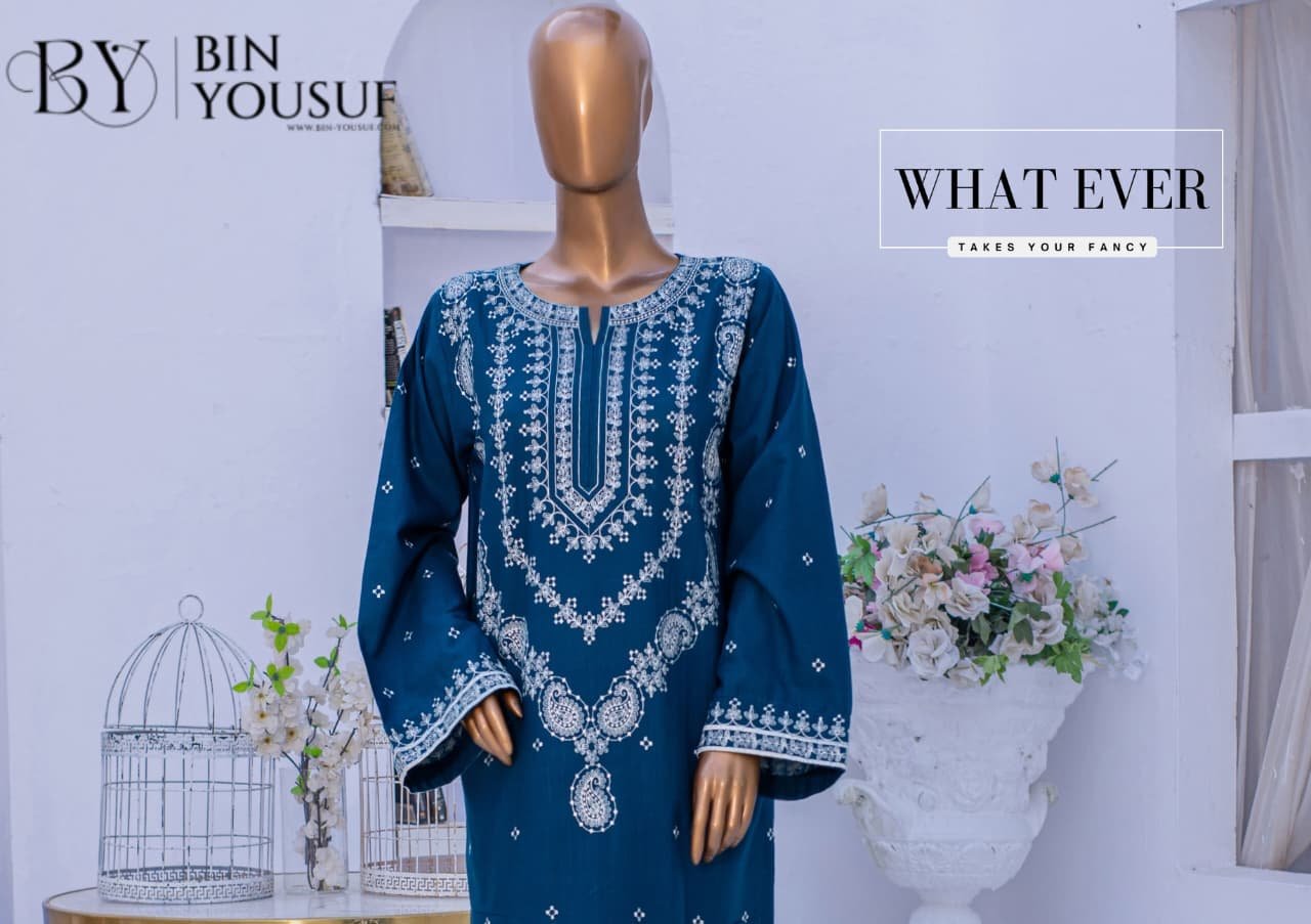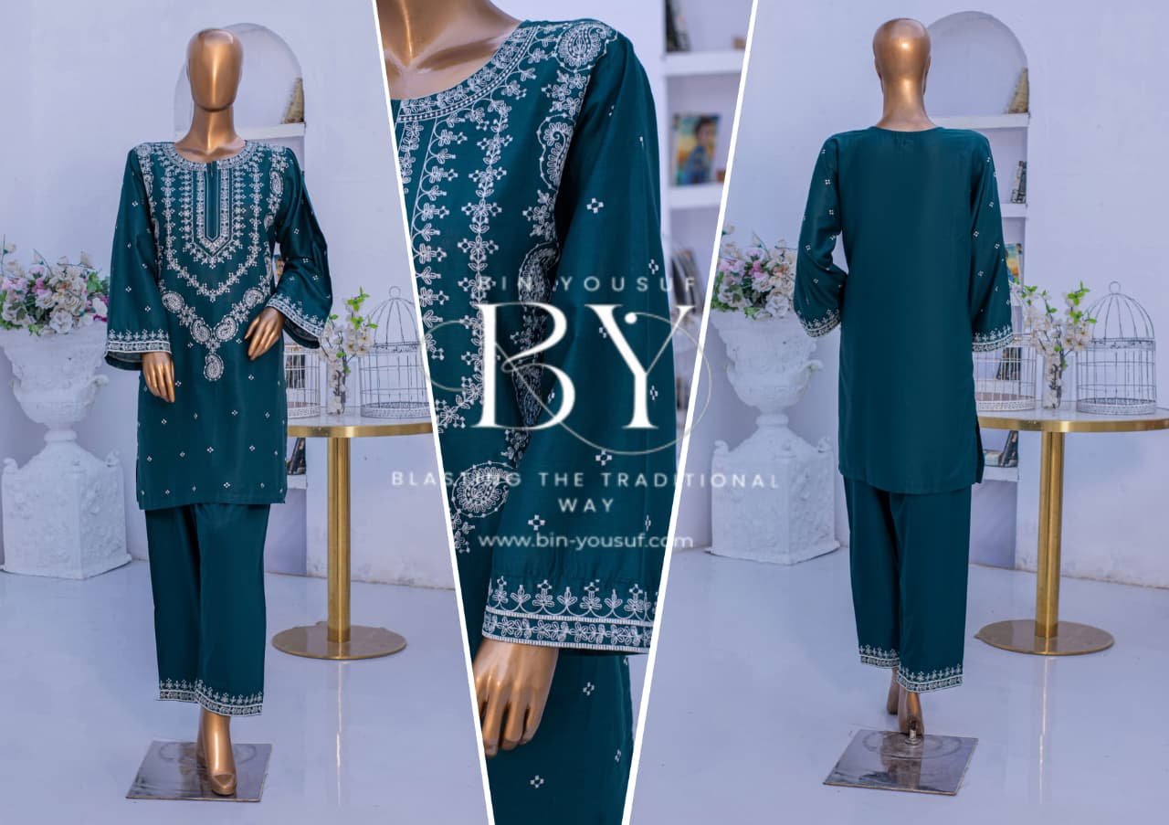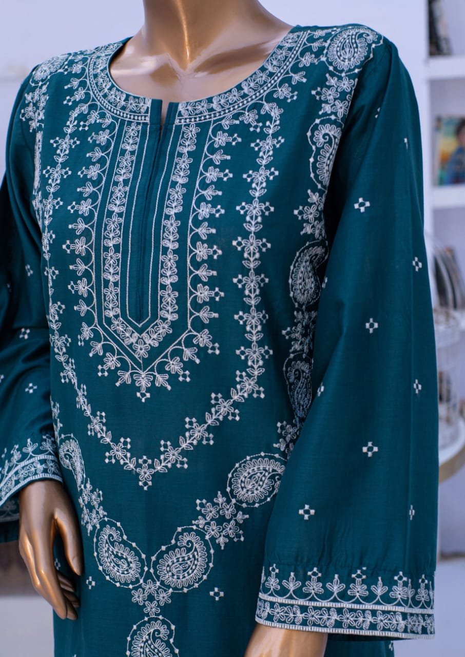 Elevate your everyday elegance with this beautifully crafted 2-piece cotton ensemble. The soft teal and blue hues are adorned with intricate white thread embroidery on the neckline, sleeves, and hem, creating a timeless and graceful look. Made from breathable cotton fabric, this outfit offers both comfort and sophistication — perfect for casual gatherings or daytime wear.