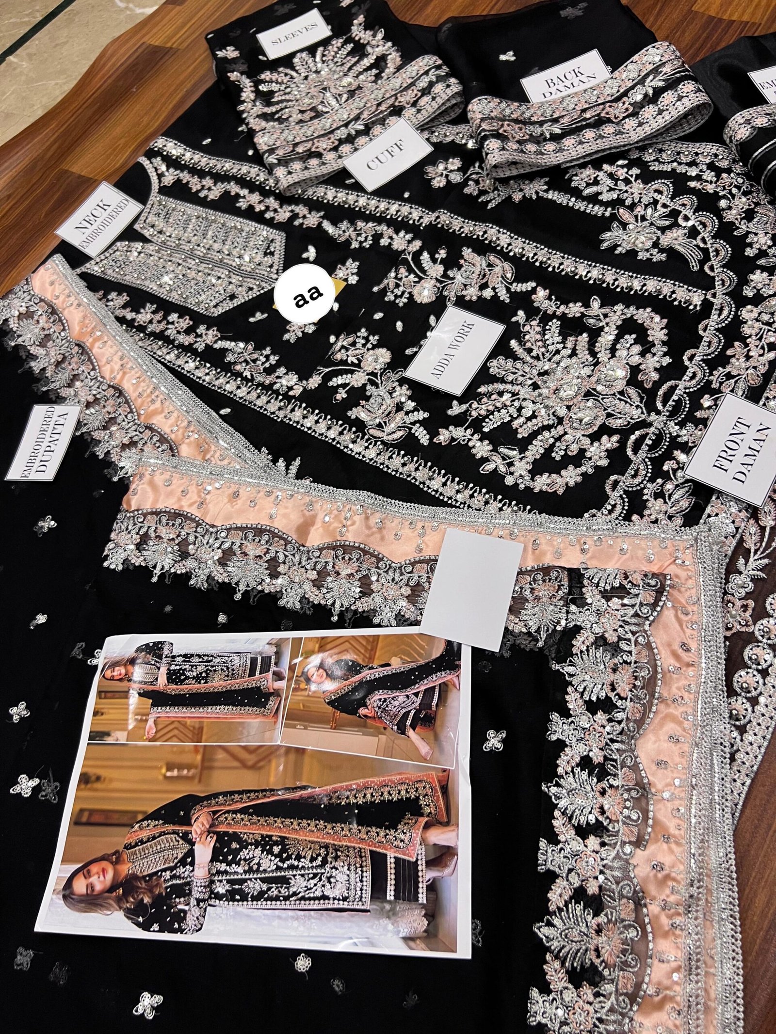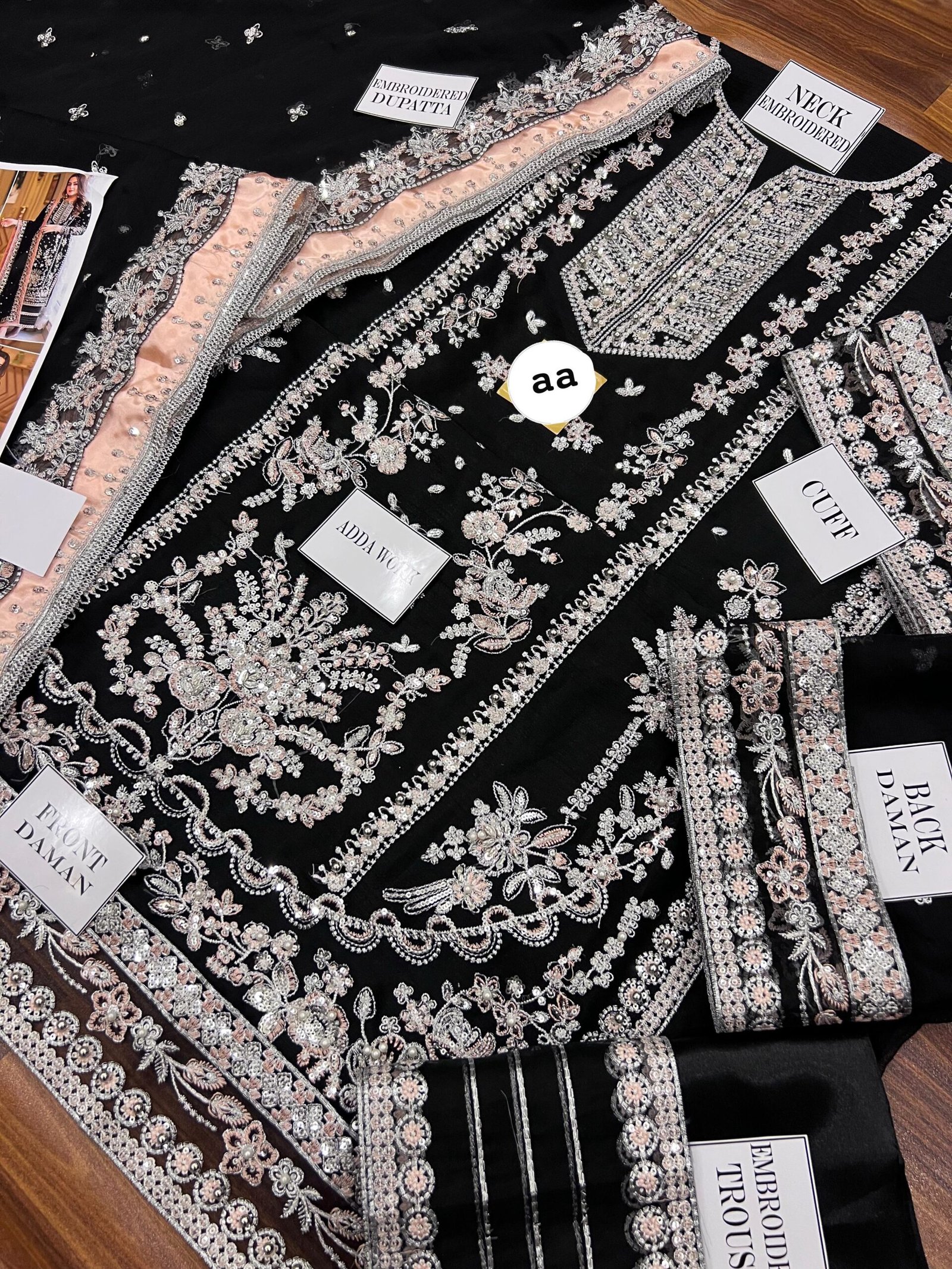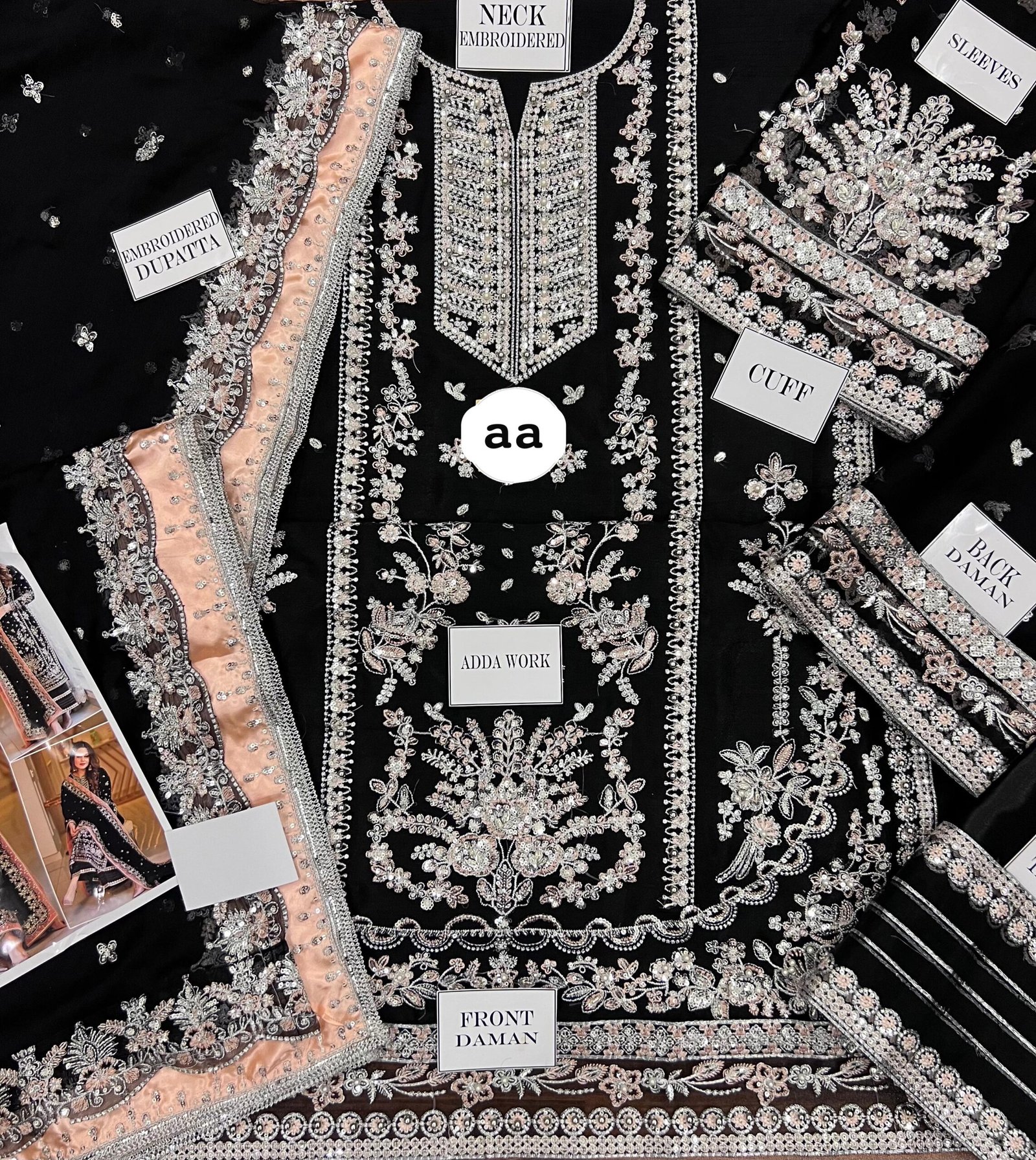 Aneela’s Luxury Embroidered Chiffon Wedding Collection- Black With Chiffon Duppata – King Copy