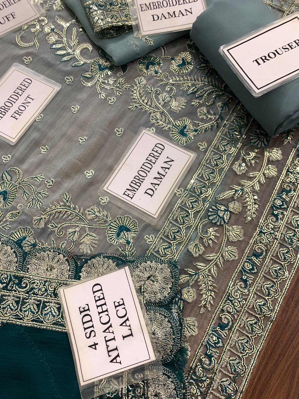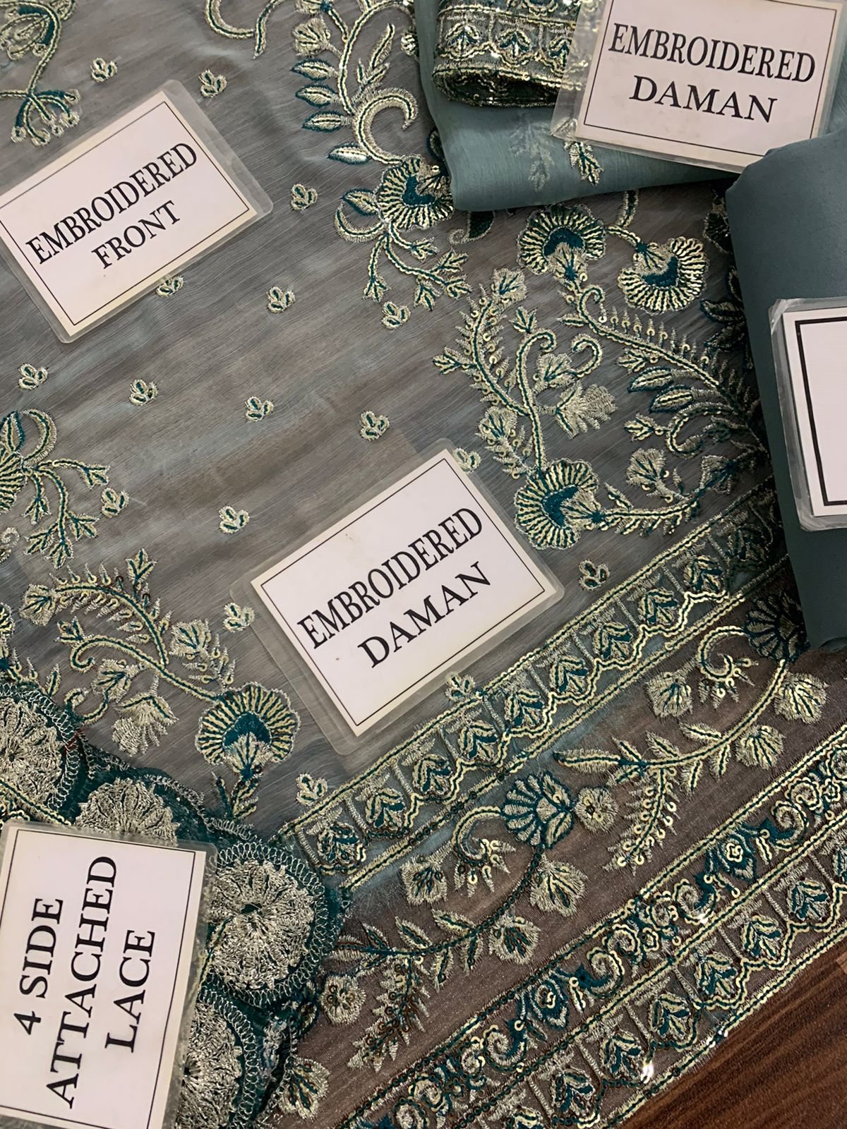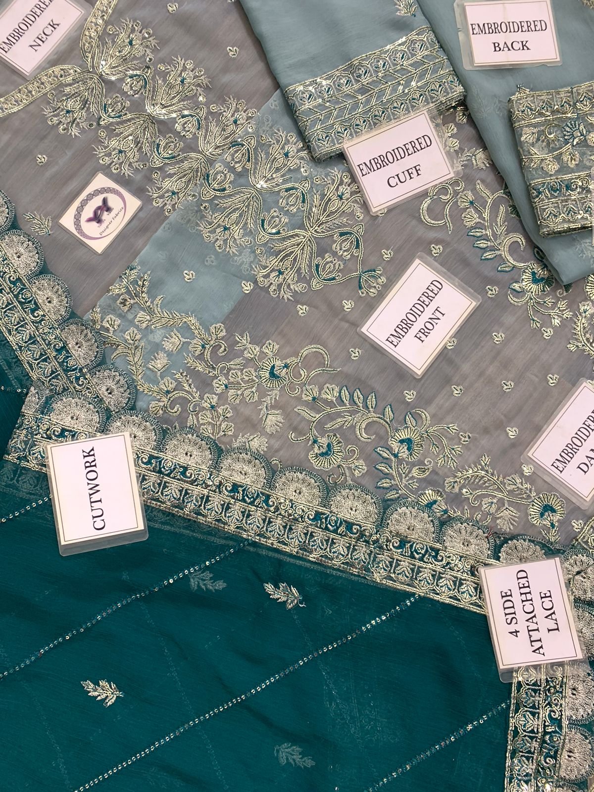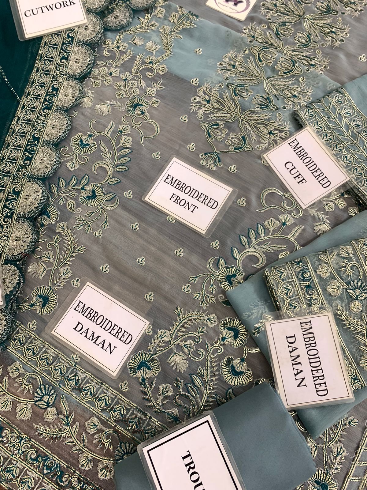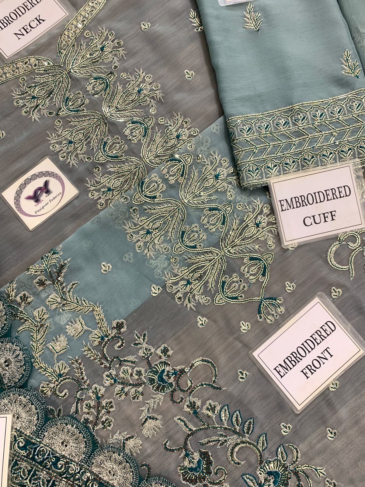 CHIFFON FULLY HEAVY EMBROIDERED SELEEVES ALONG WITH HEAVY EMBROIDERED CUFF PATCH GIVEN SEPERATELY