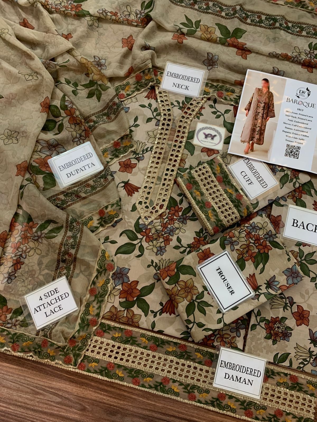 BAROUQE Schifflie Work 4 SIDE APLIC DUPATTA