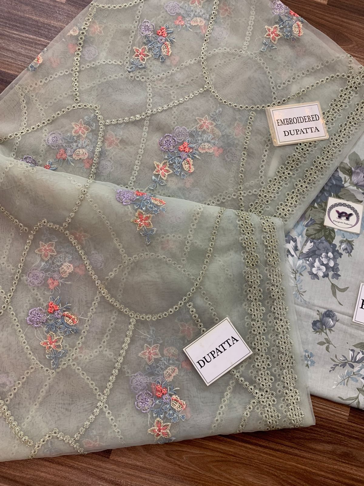 CRINCKLE PRINTED CHIFFON DUPATTA WITH 4SIDE HEAVY EMBROIDERED CUTWORK BORDERS ATTACHED
