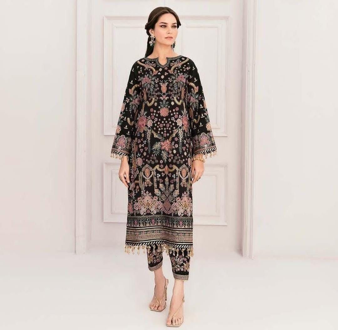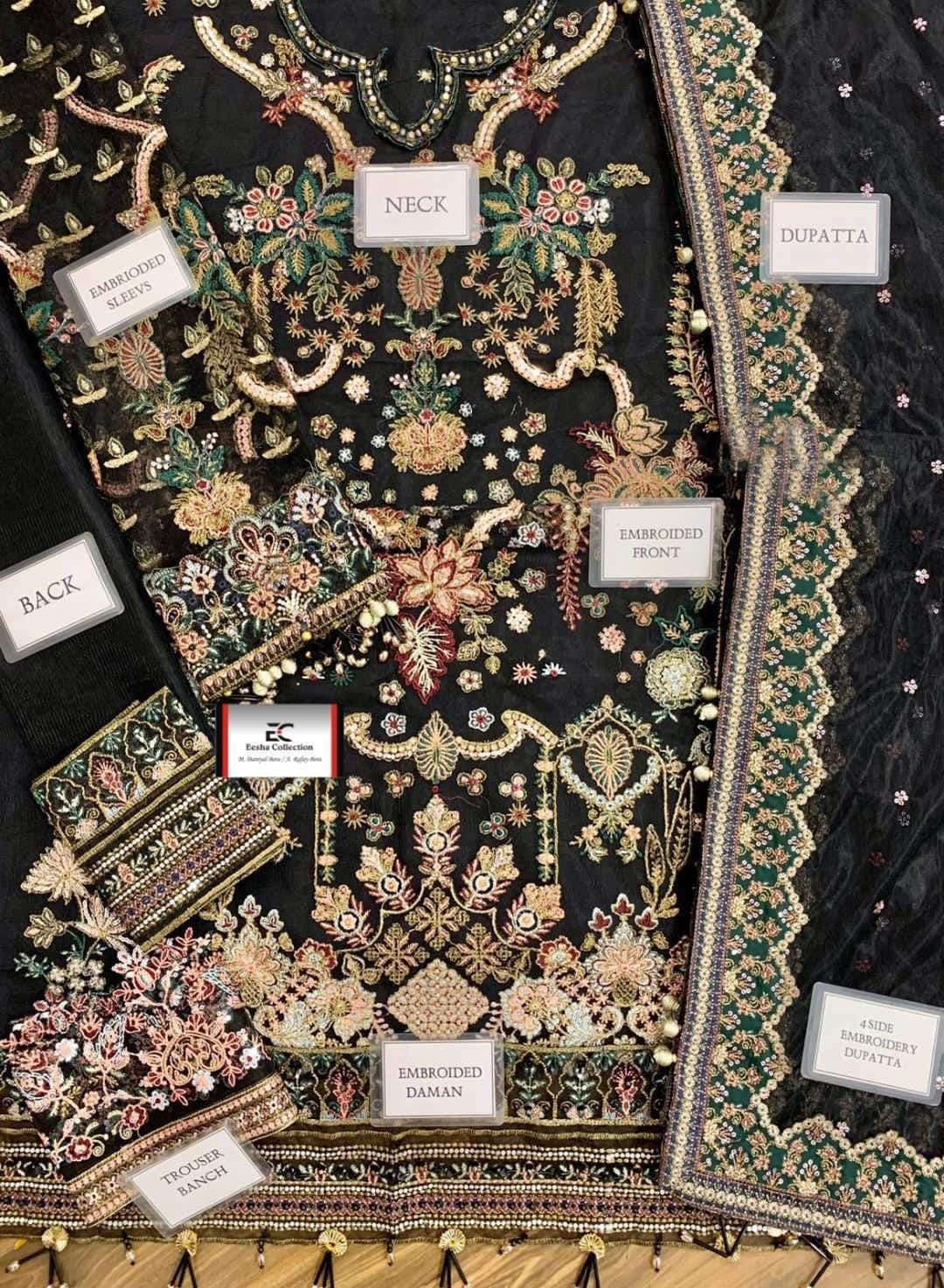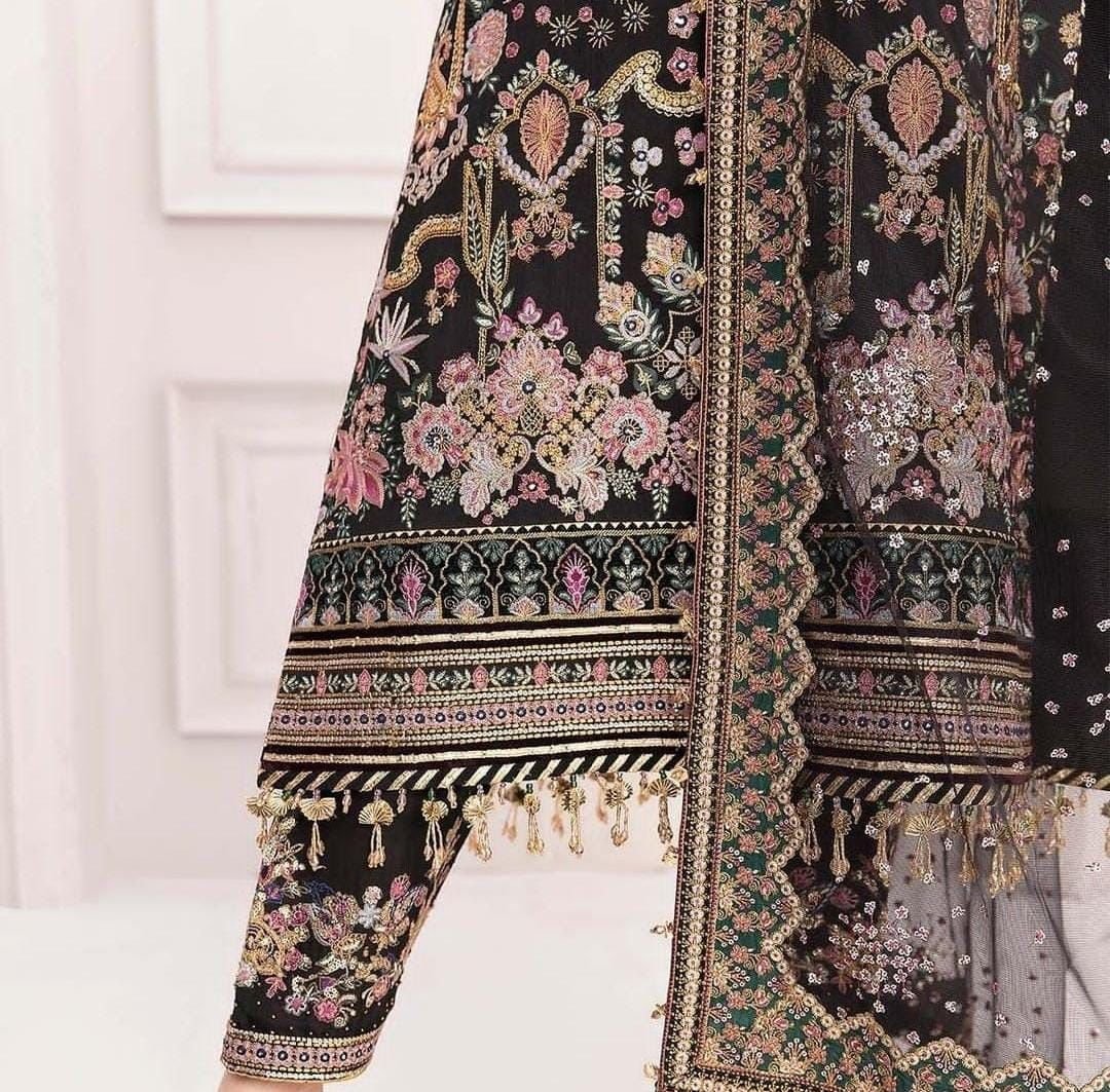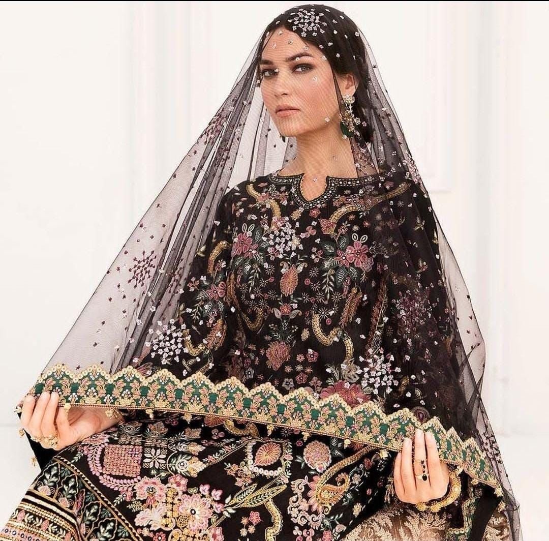 Baroque Heavy Embroidered Addawork Formal Bridal Collection-Black