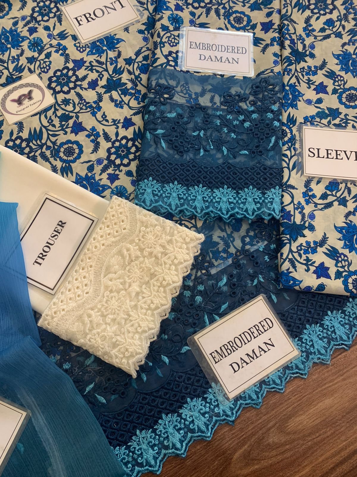 Lawn Dyed Trouser with Embroidered Patch on Organza