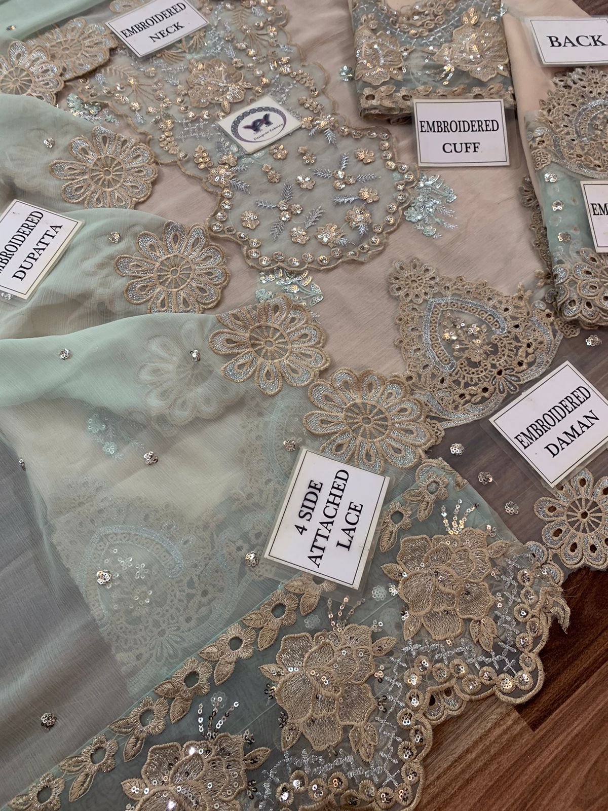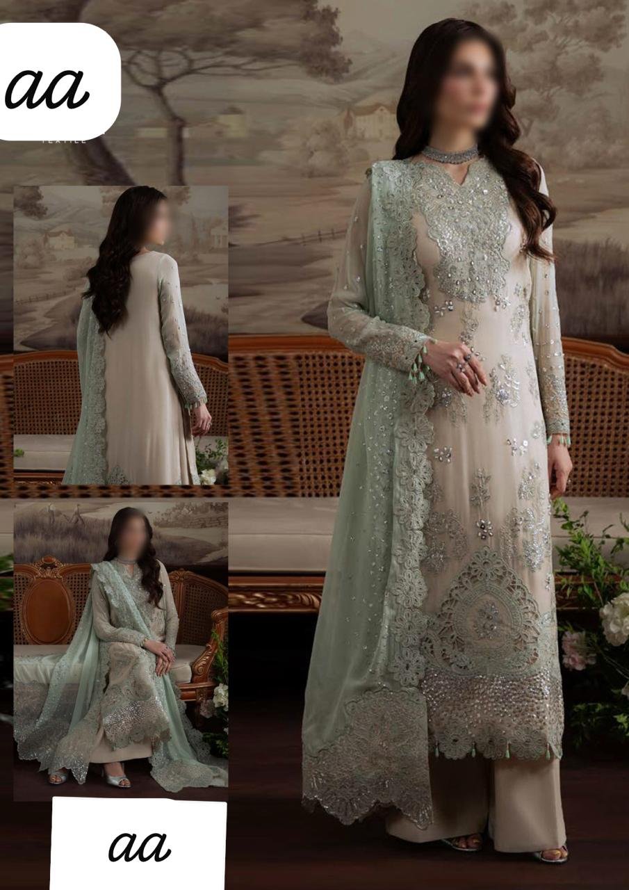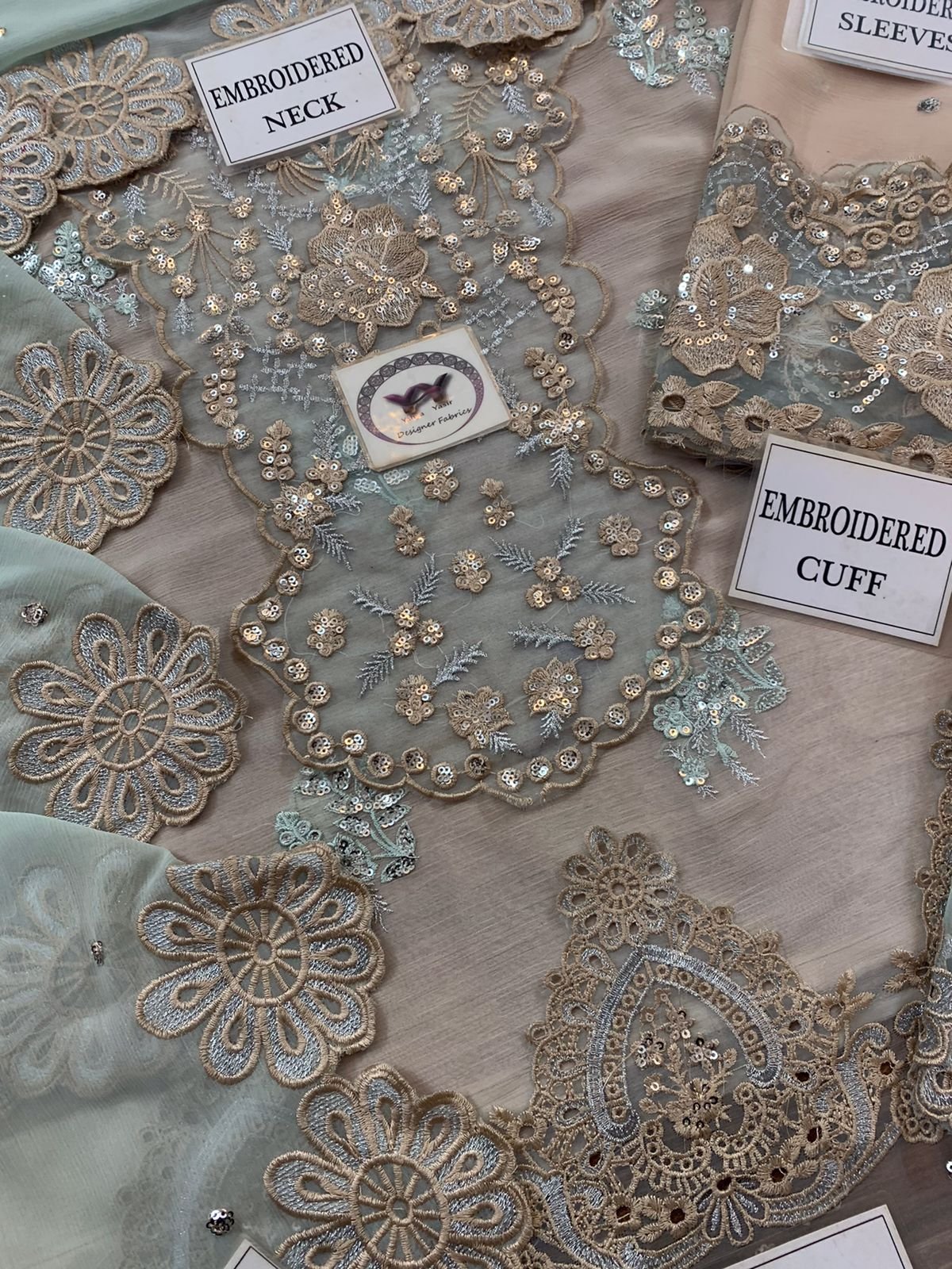 Ciffon Embroidered Front with Embroidered Neck And Daman given On Organza