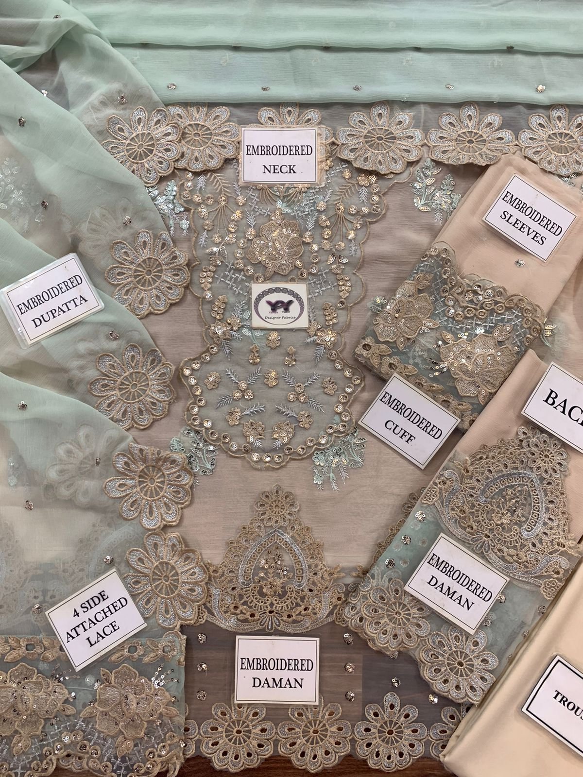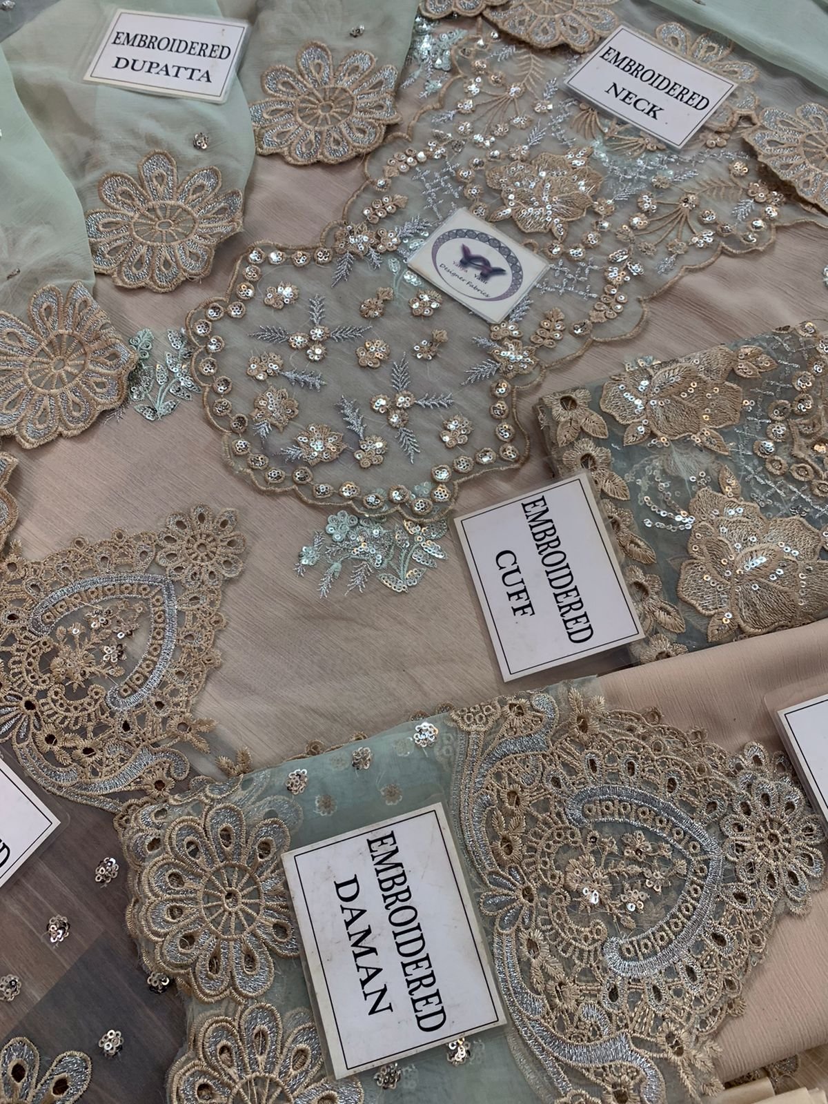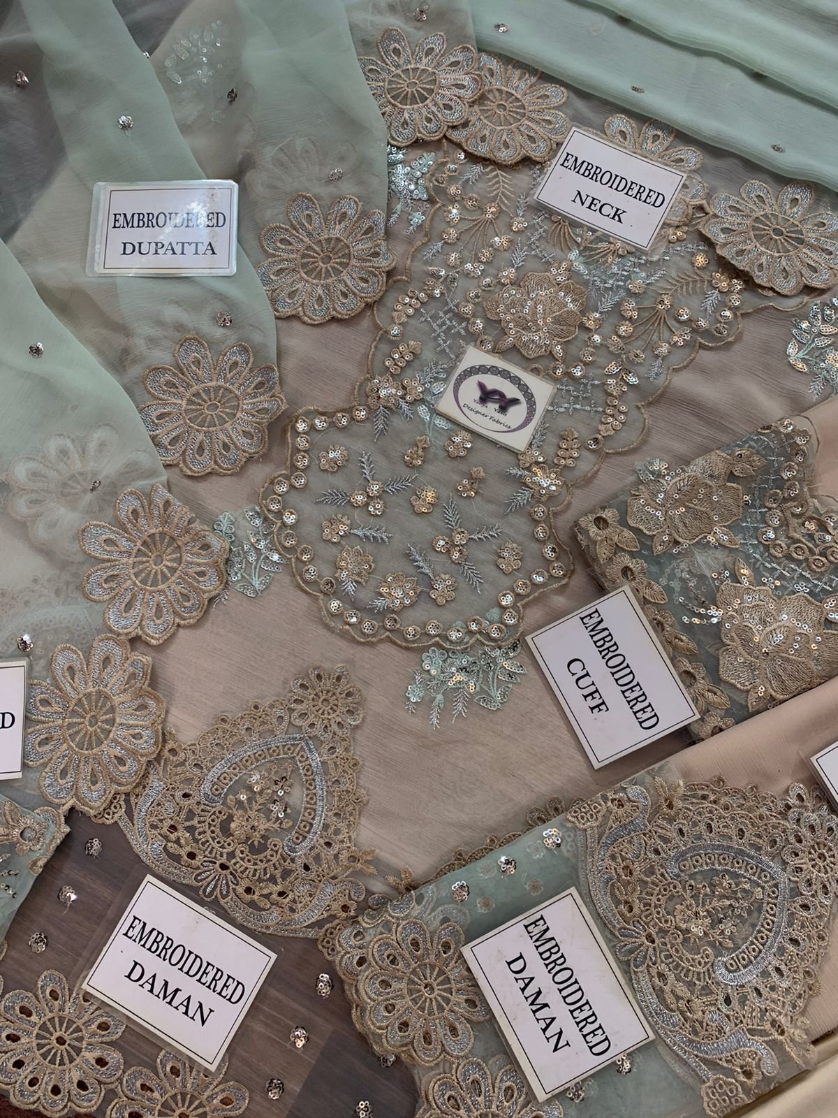 Ciffon Embroidered Front with Embroidered Neck And Daman given On Organza