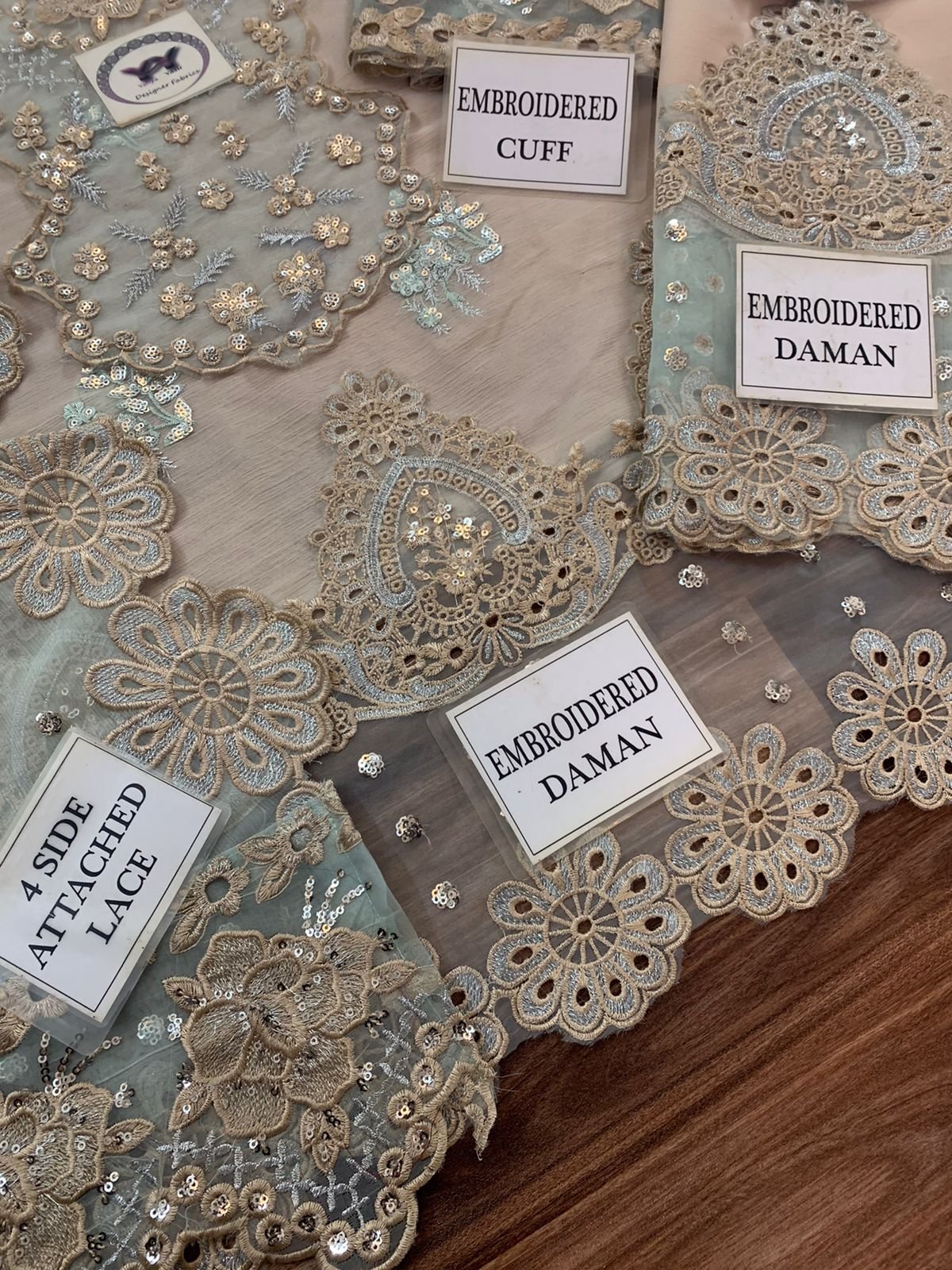 Embroidered Chiffon sleeves With Embroidered Organza Cuff