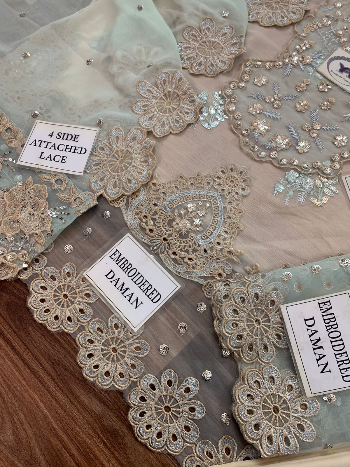 Plain back Embroidered Daman given on Organza