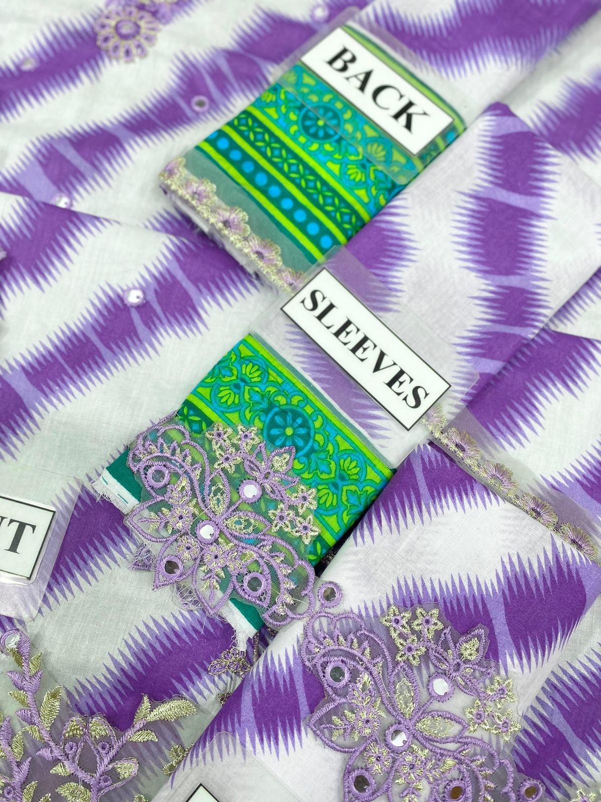 •Embroidered 90/70 Lawn fully embroidered with 9mm heavy embroidered
