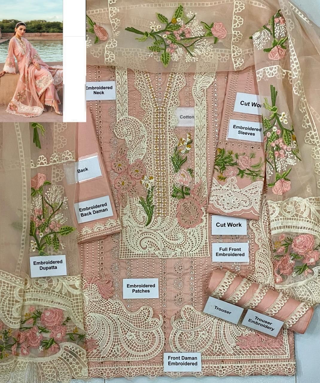 •Embroidered Front & Back Daman Lace