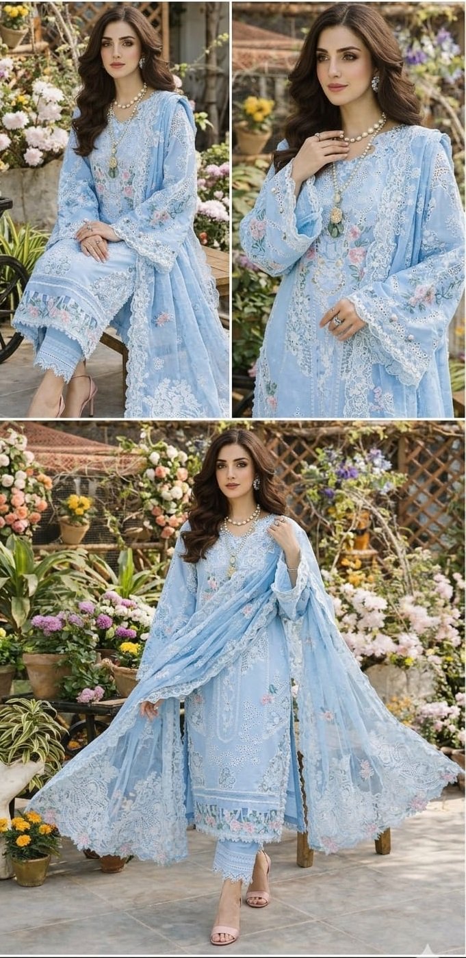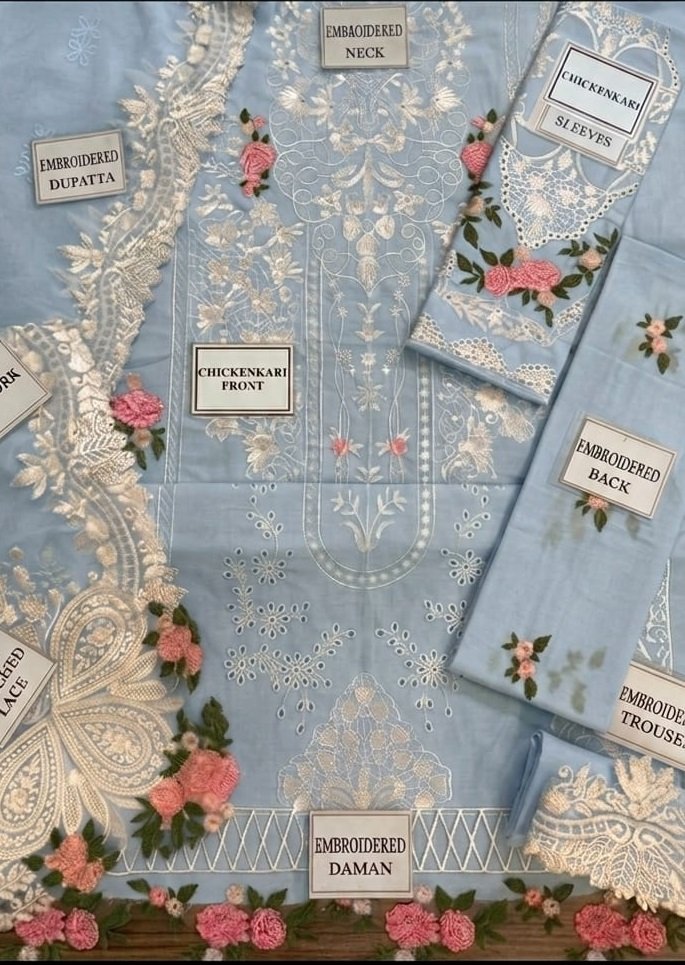 HEAVY EMBROIDERED CHICKENKARI COTTON FRONT WITH EMBROIDERED DAMAN PATCH
