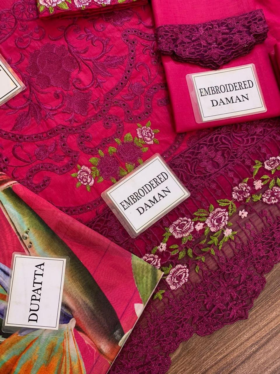 HEAVY EMBROIDERED CHICKENKARI COTTON FRONT WITH HEAVY EMBROIDERED CUTWORK DAMAN PATCH
