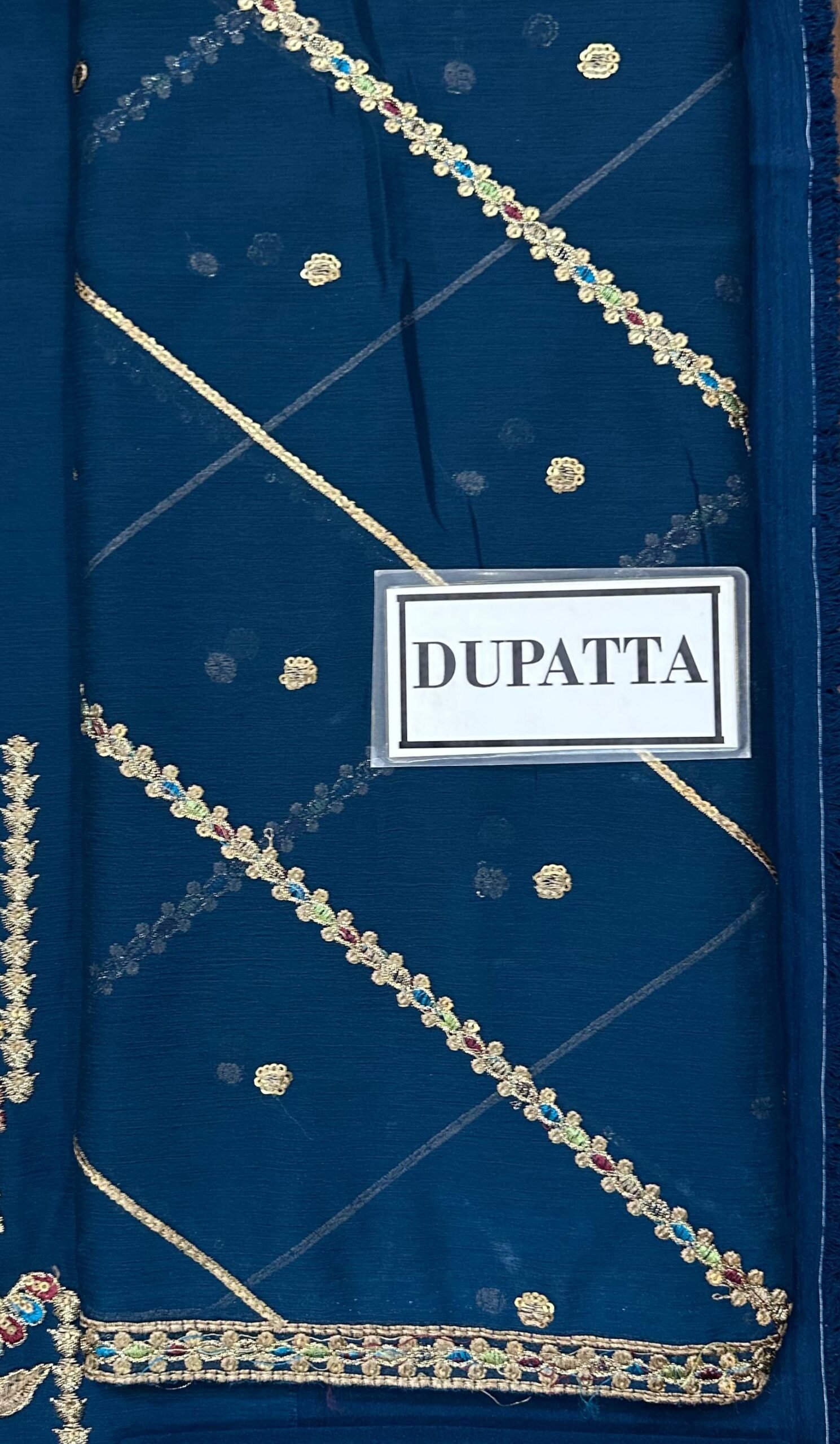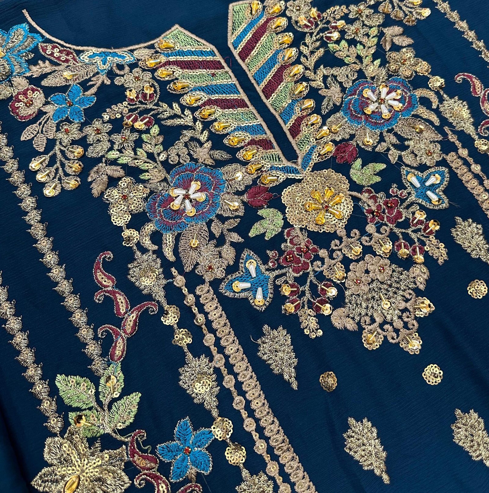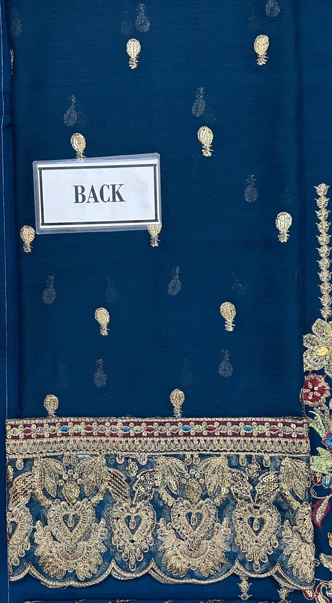 Semi pure Chiffon Embroidered 💯 High Quality Hand made Front