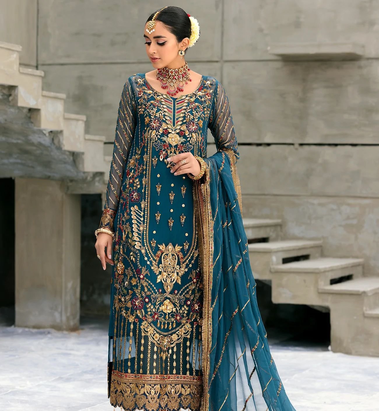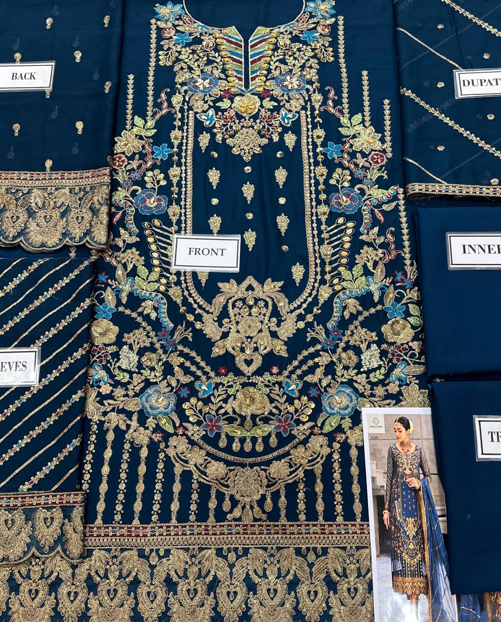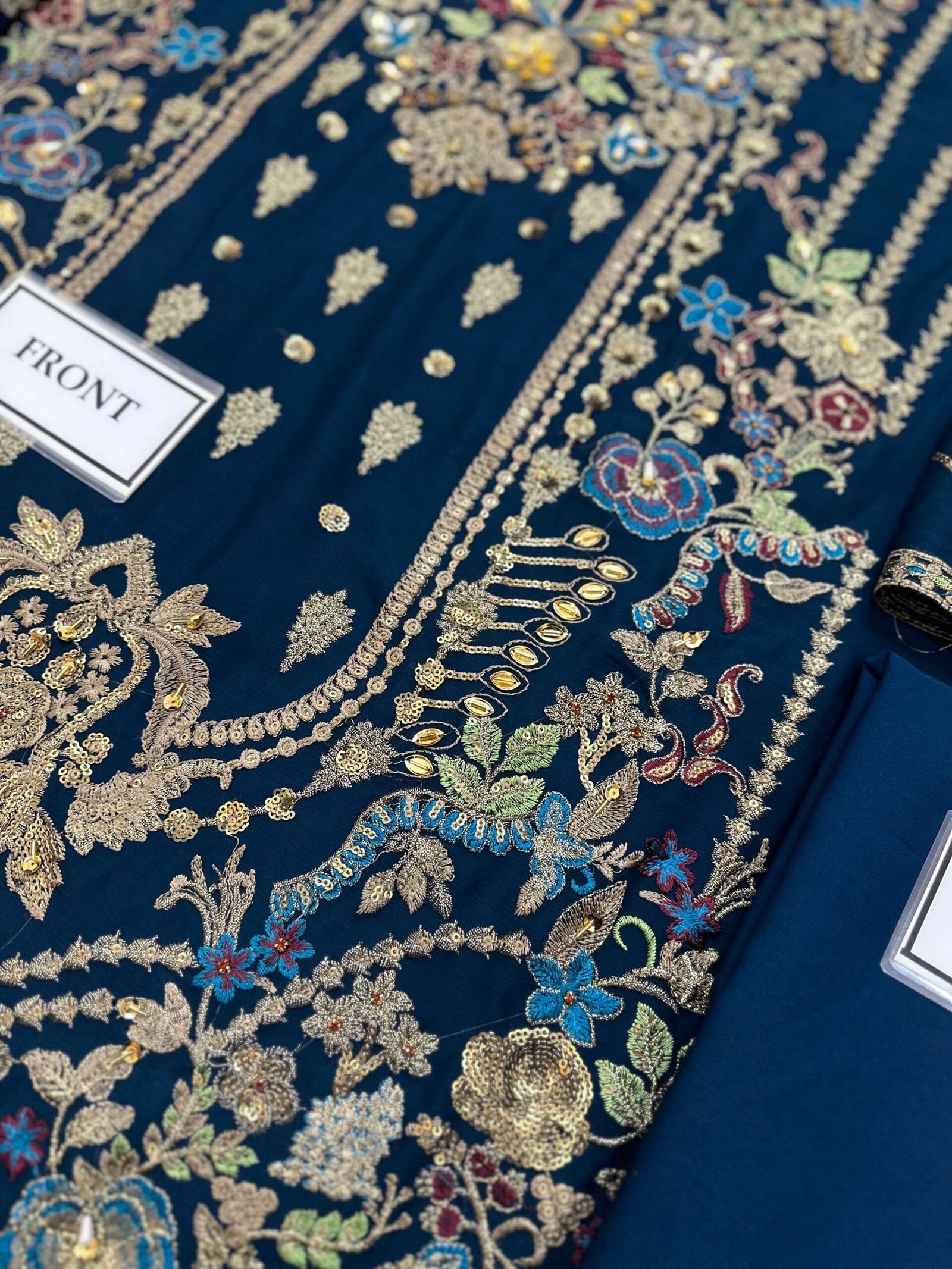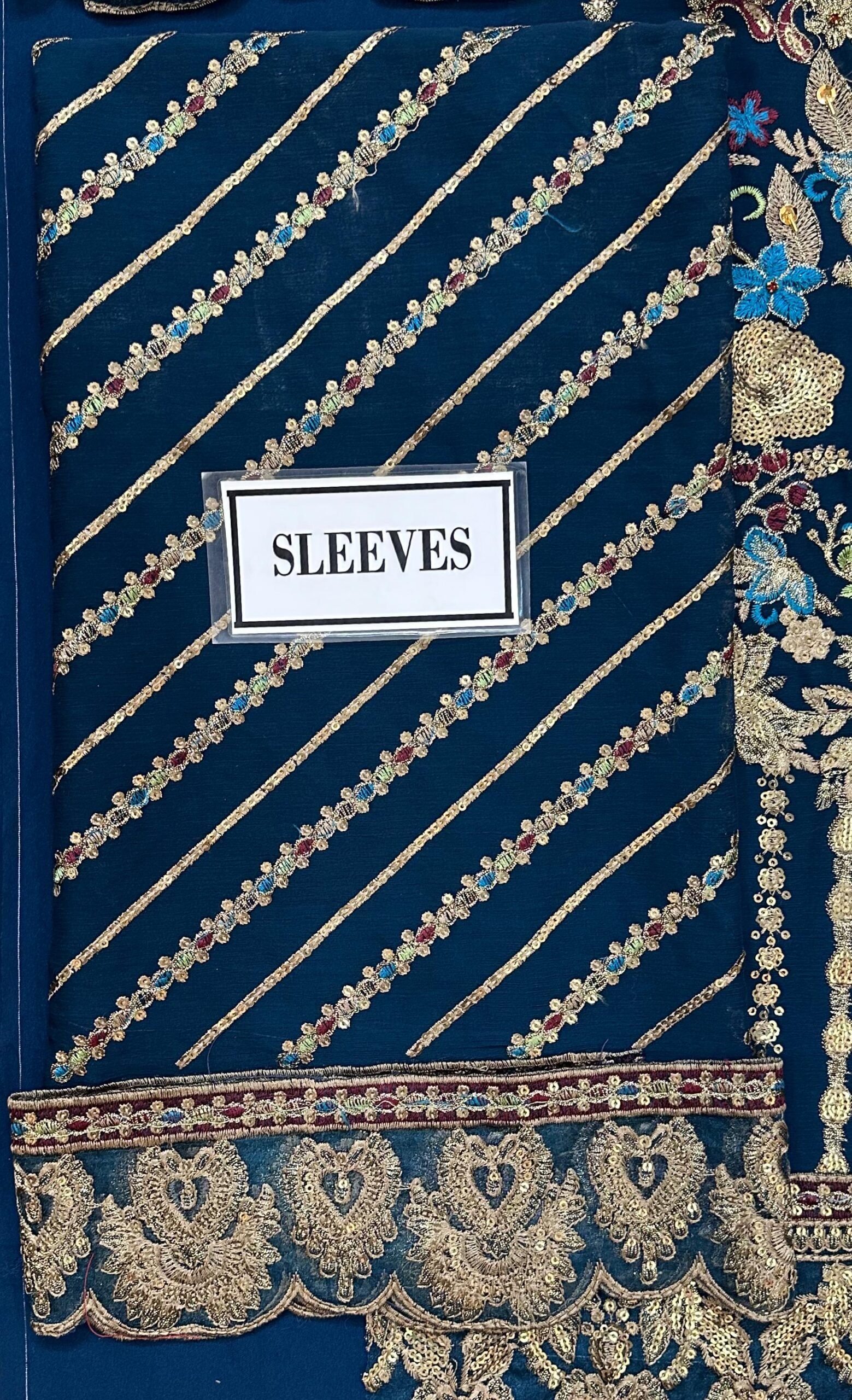 Semi pure Chiffon Embroidered 💯 High Quality Hand made Front