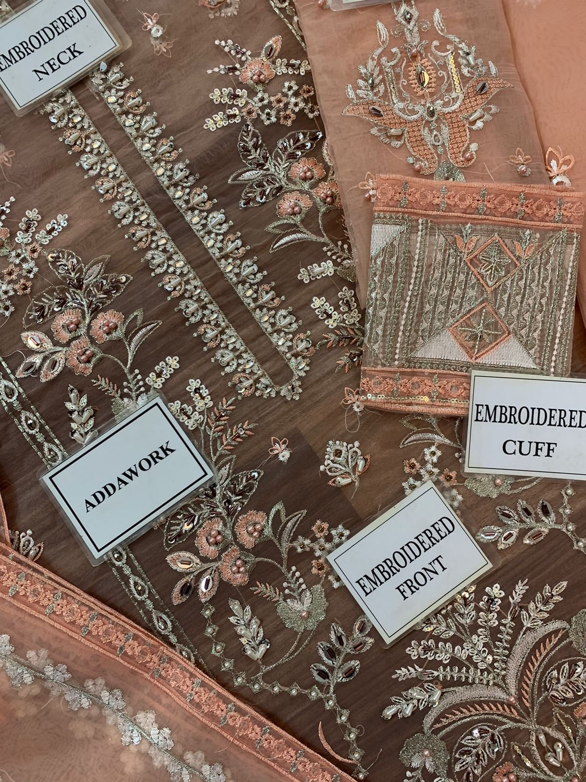 HEAVY EMBROIDERED ORGANZA SLEEVES EMBELLISHED WITH ADDA WORK WITH HEAVY EMBROIDERED CUFF PATCH