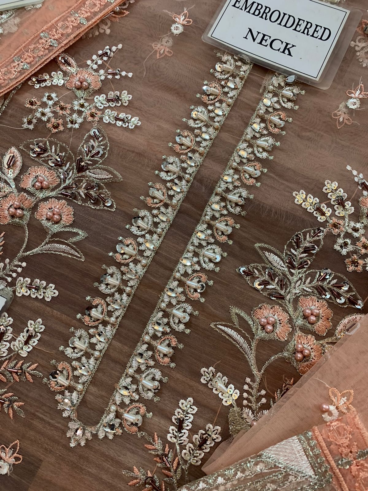 HEAVY EMBROIDERED ORGANZA BACK WITH HEAVY EMBROIDERED DAMAN PATCH