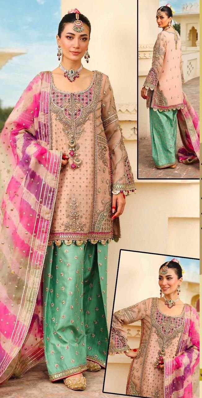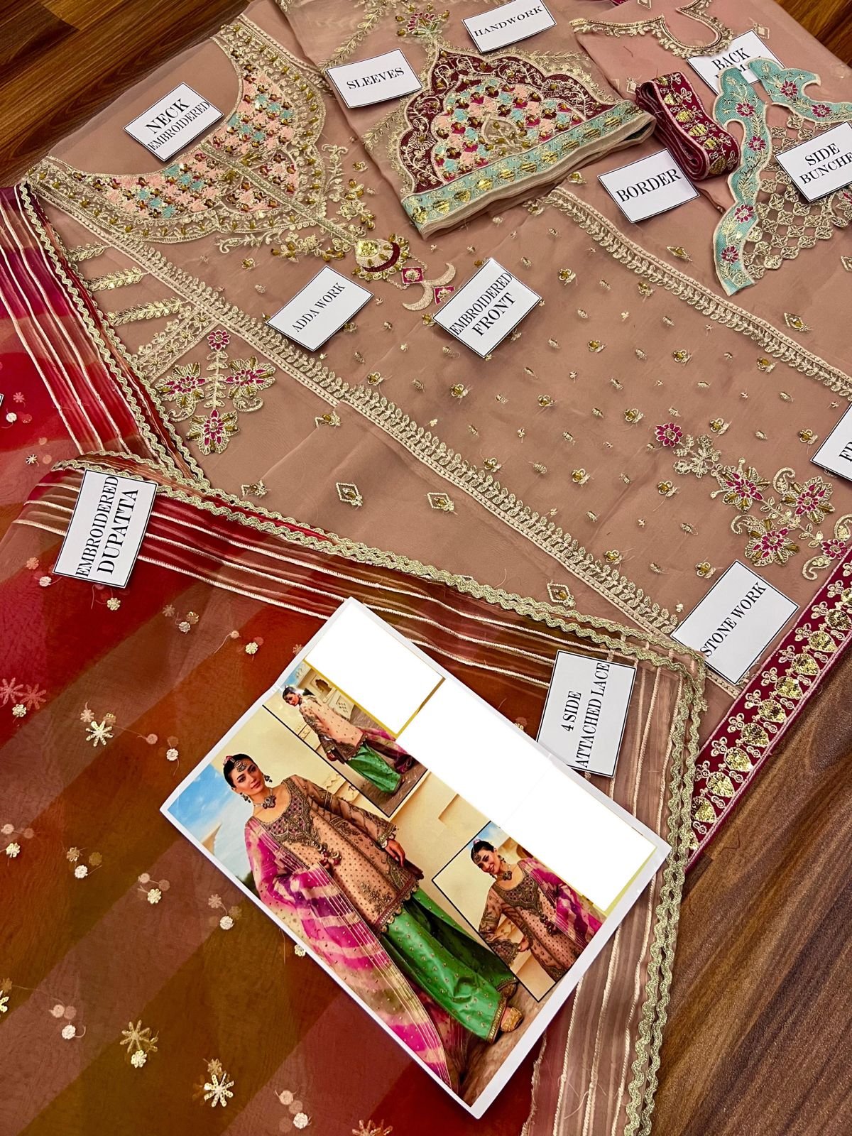 •Neck Heavy Sequence Embroidered Motif on Fabric with Heavy Adda🤚work
