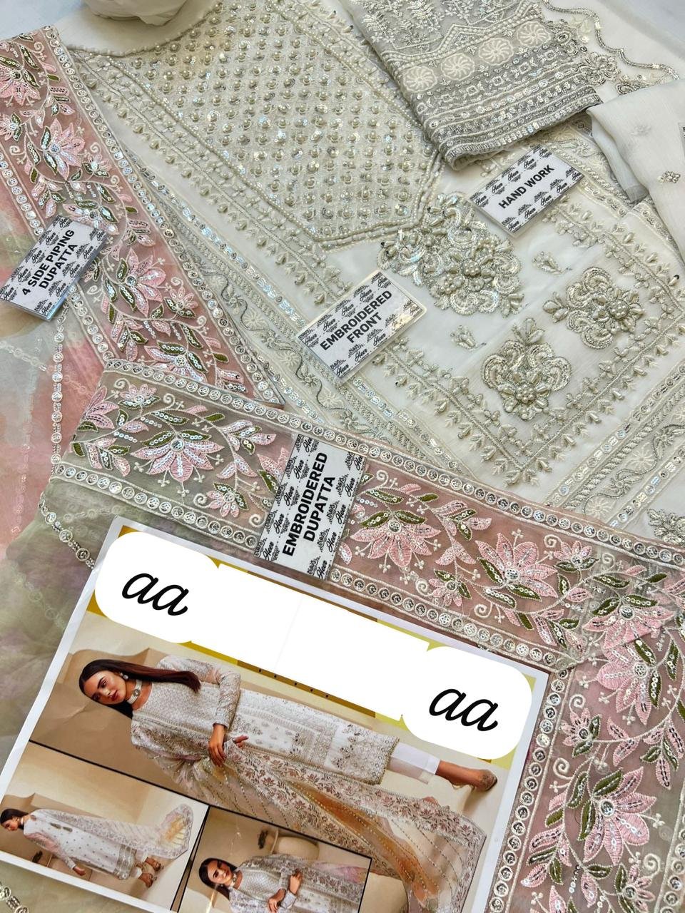 •Chiffon Front Sequins Embroidered Daman on Fabric & Sapreat Embroidered Border on organza
