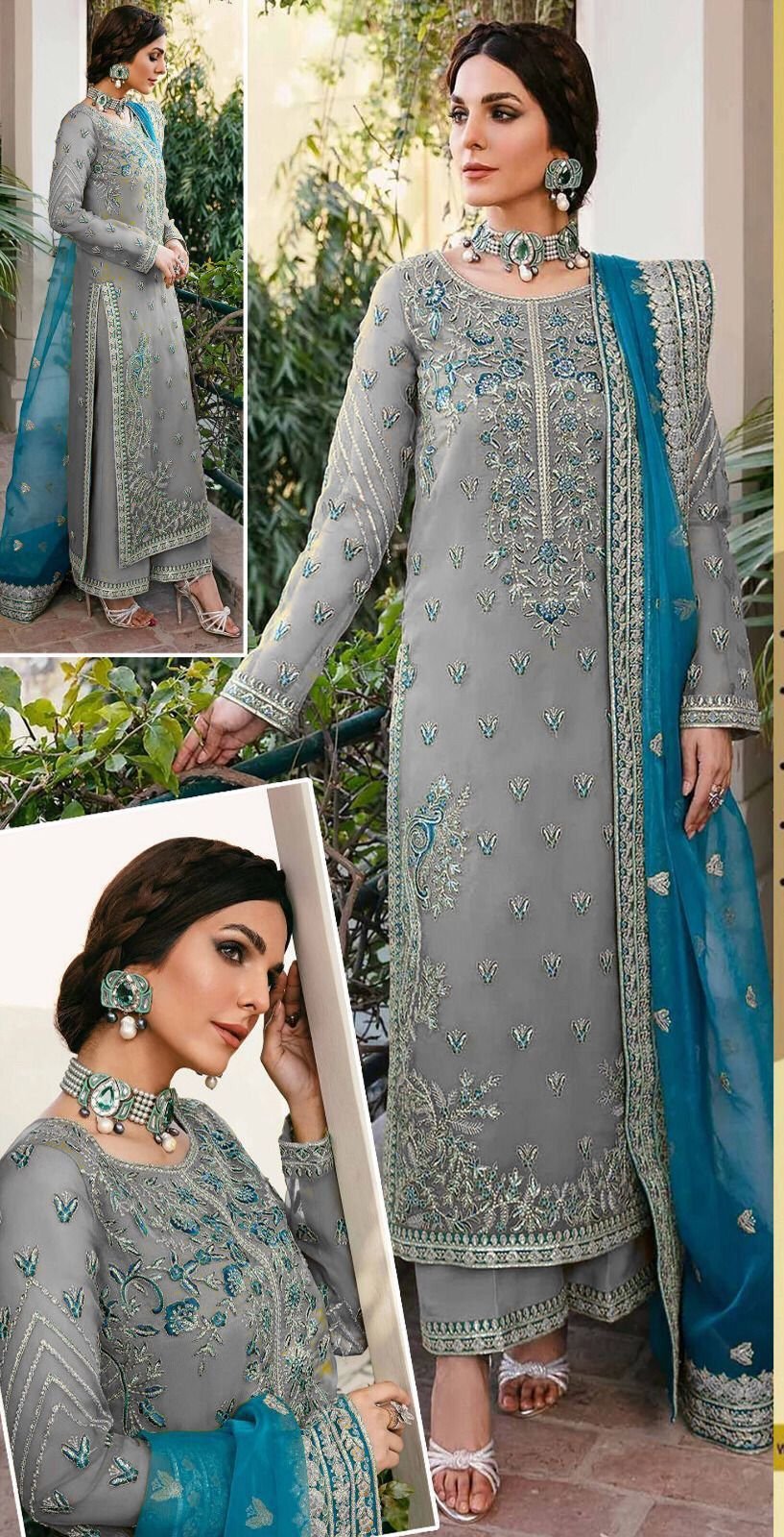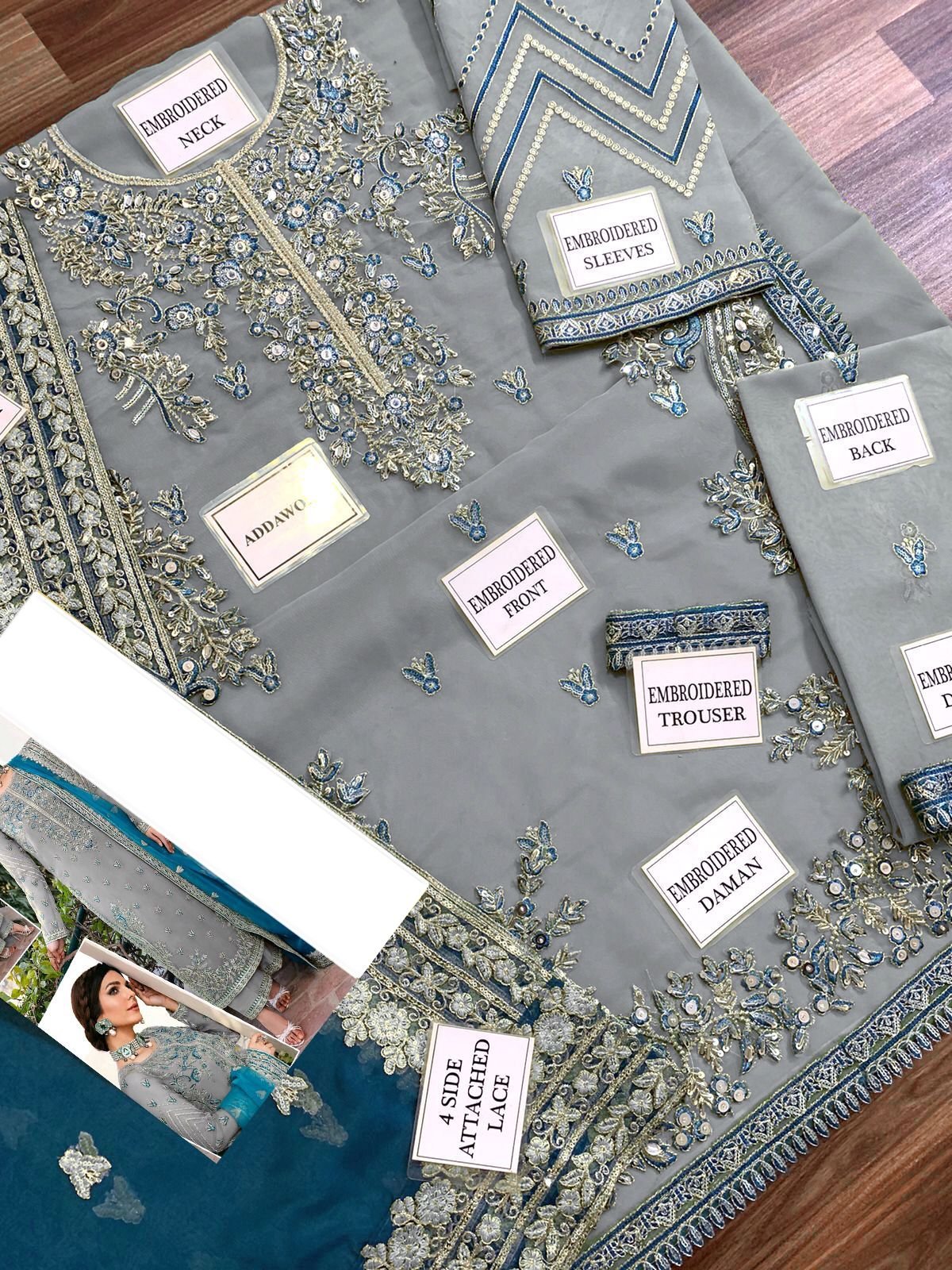 •Neck Embroidered Motif On Fabric with Heavily Adda🤚work
