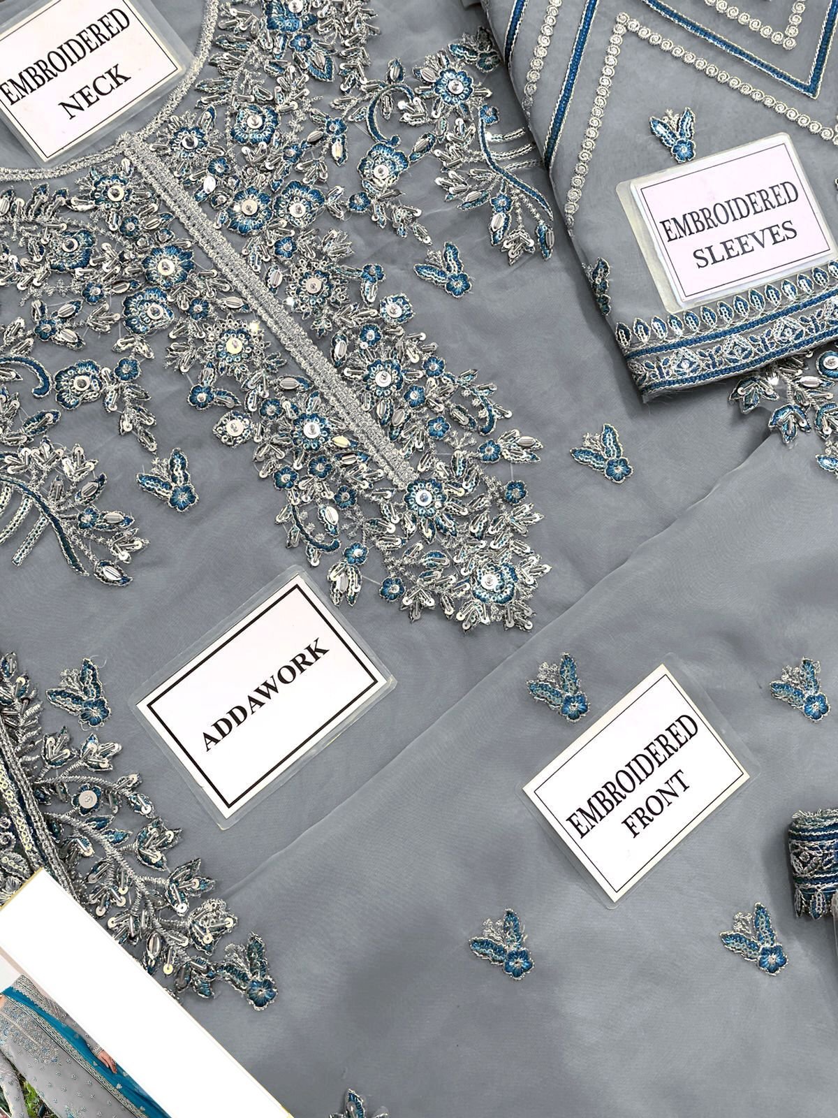 •Back Heavy sequence Embroidered with Back Daman & Chake Broders