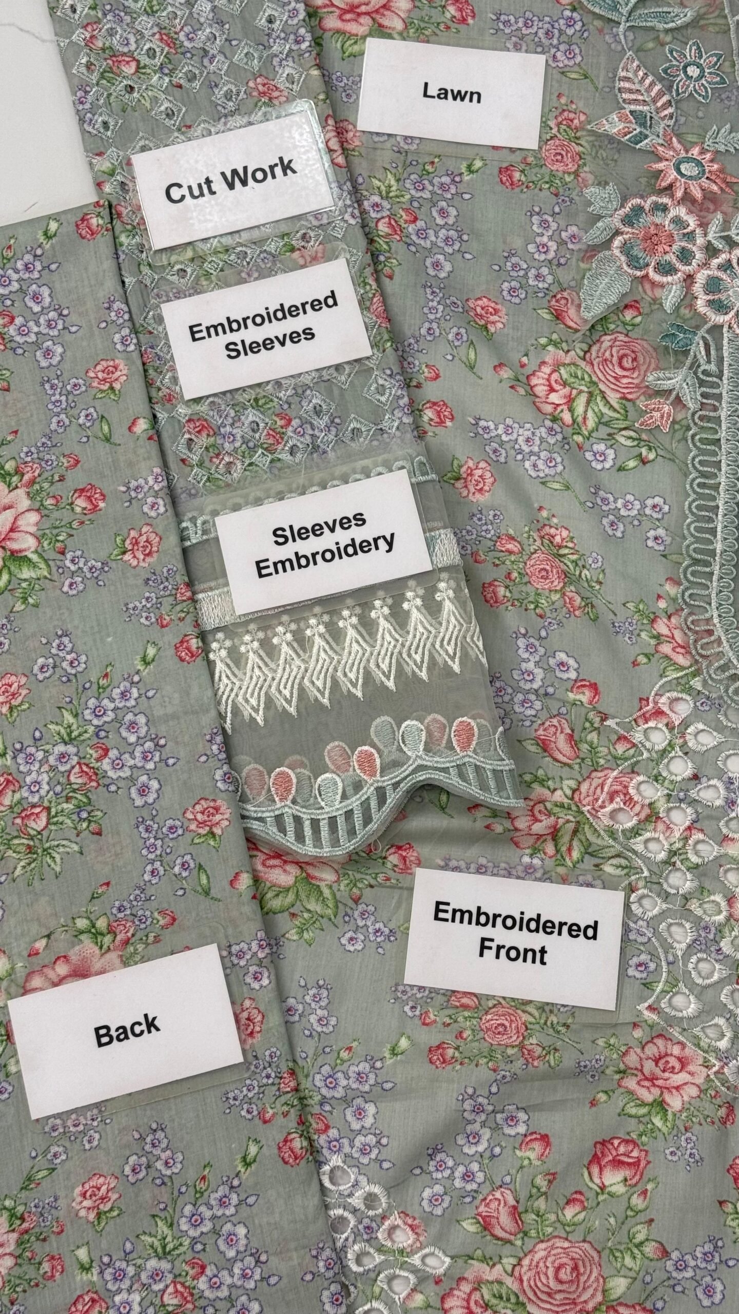 * ⁠Chikankari Embroidered Sleeves