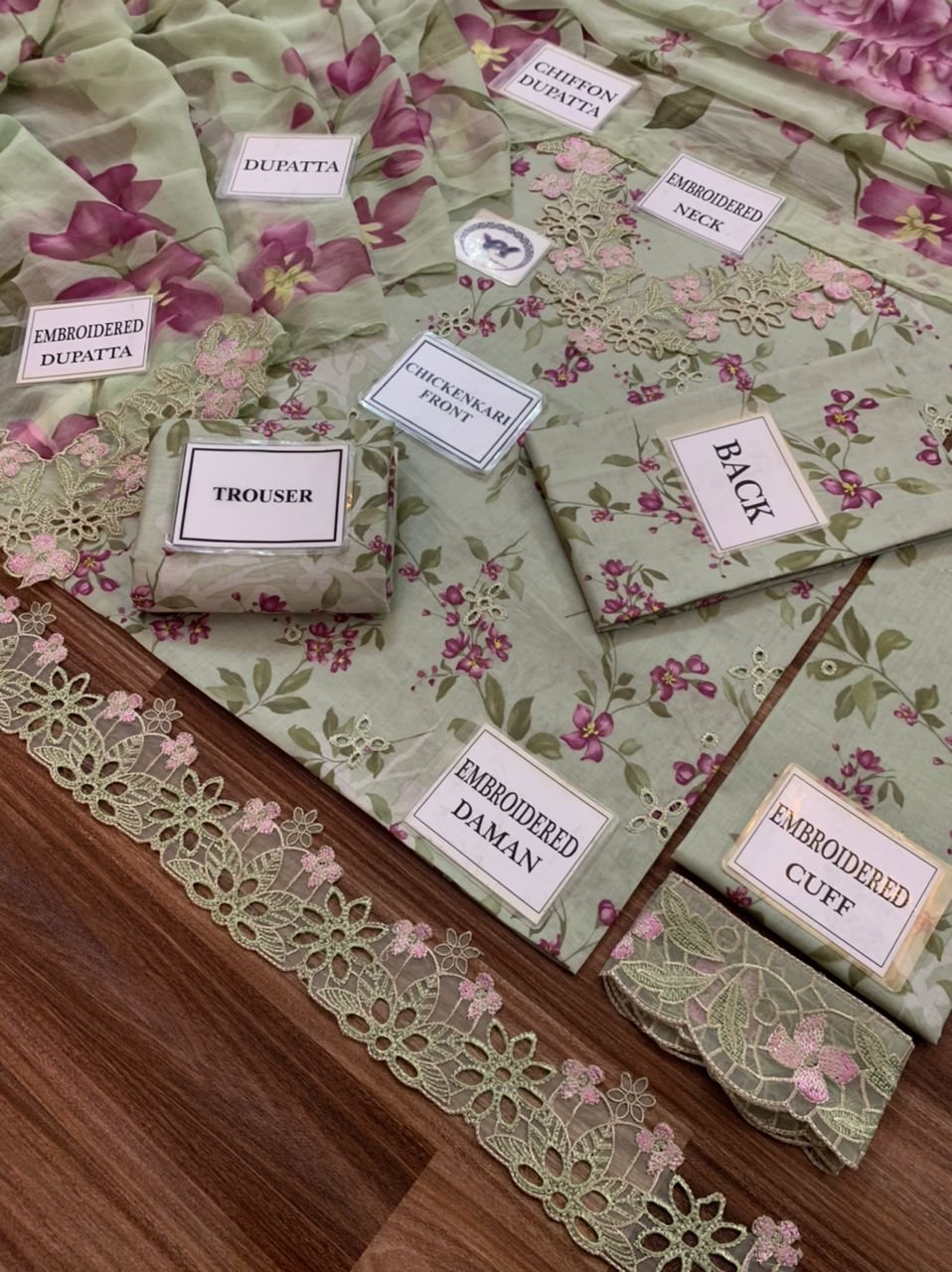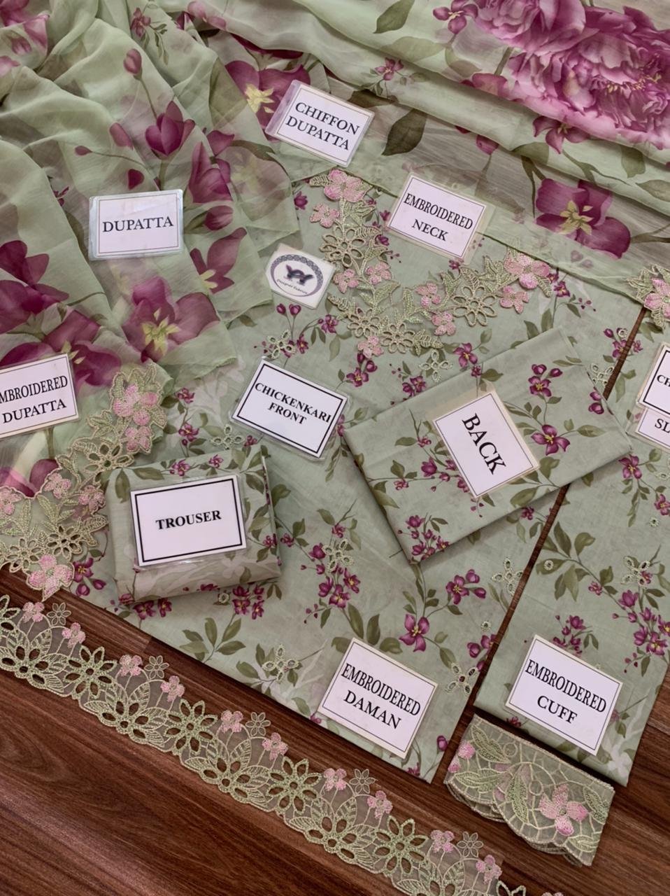 LAWN PRINTED WITH HEAVY CHICKENKARI FRONT ALONG WITH HEAVY EMBROIDERED NECK/DAMAN PATCHES