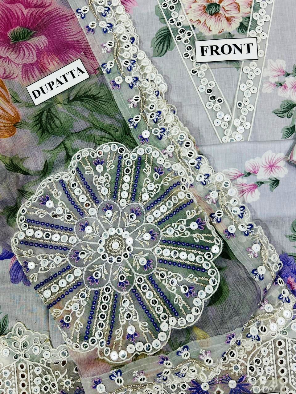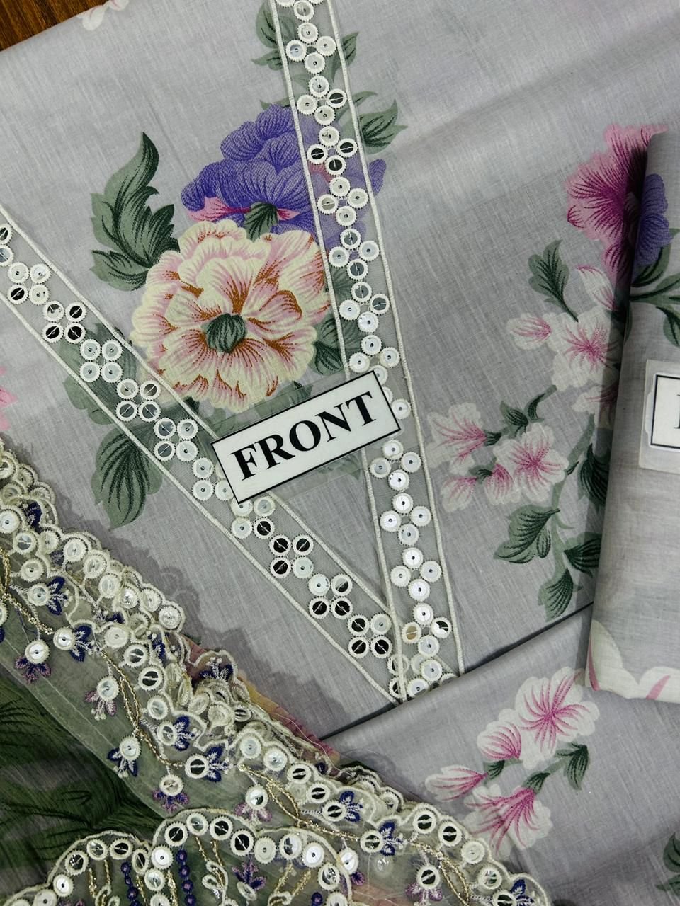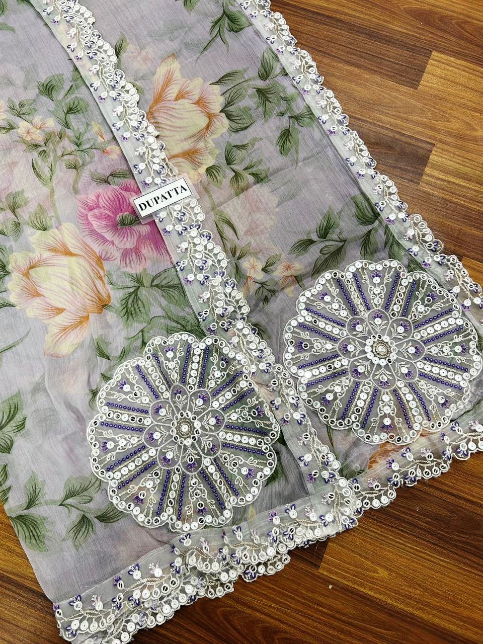 •Printed Chiffon Dupatta with 4 side embroidered Ready to wear with 2 sides Heavy Emb Bunch 3mm sitara work