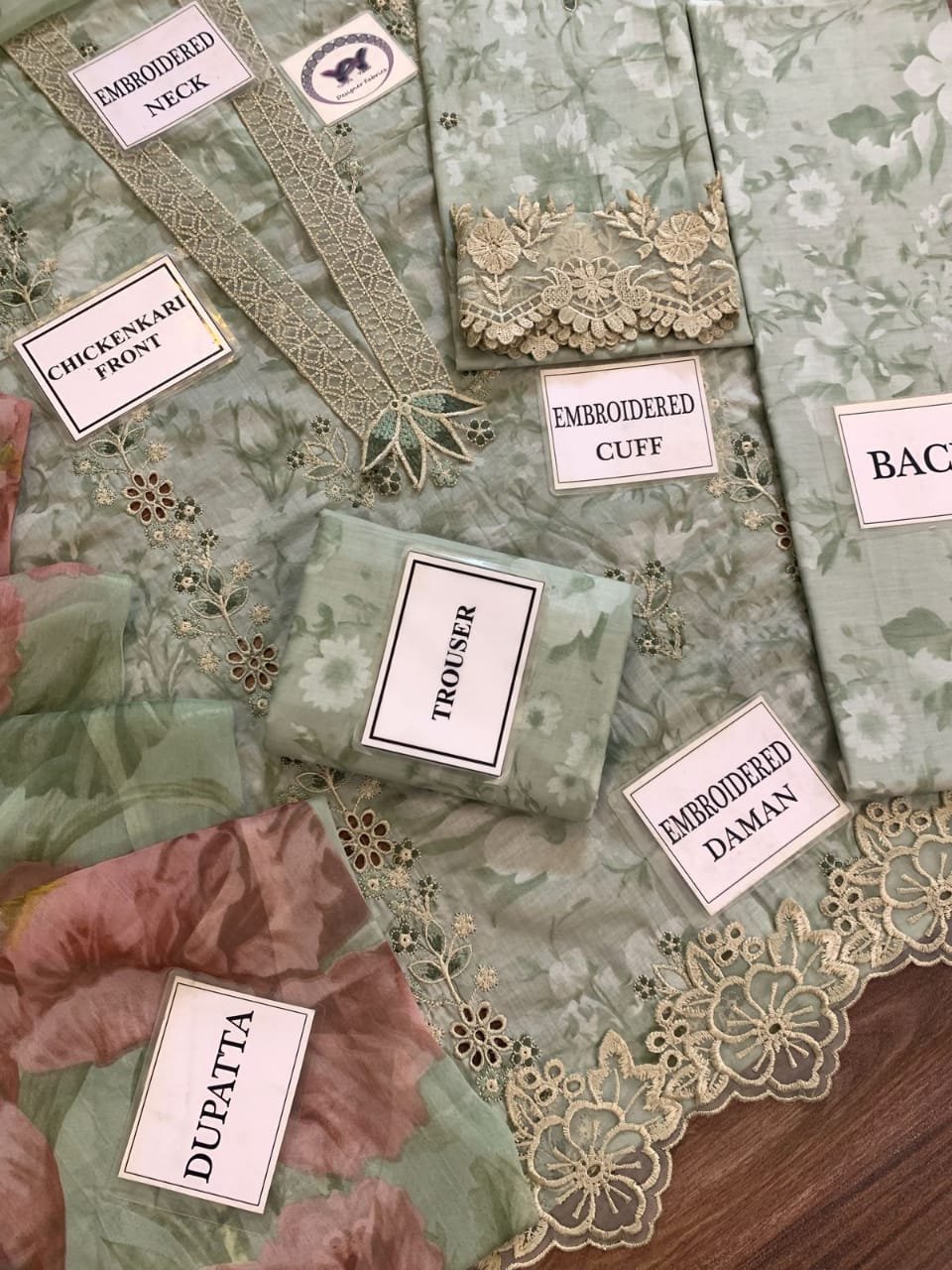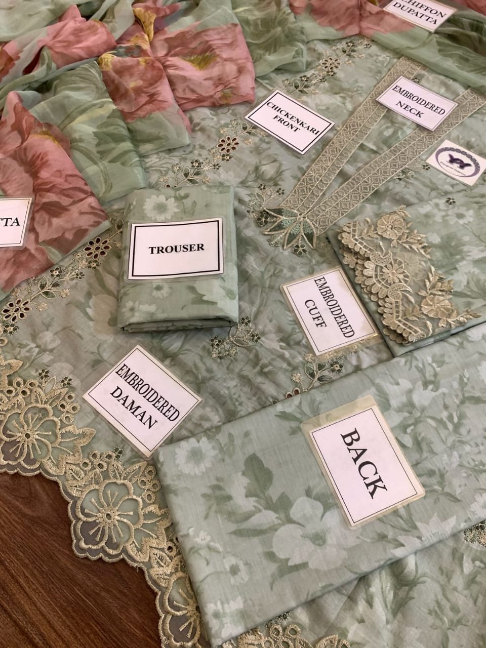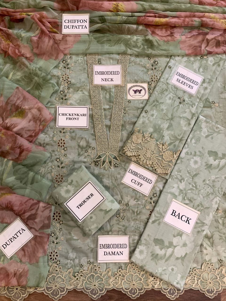 •Printed 90/70 Lawn with heavy Chickenkari Front Along with heavy Embroidered Neck & Daman Patch