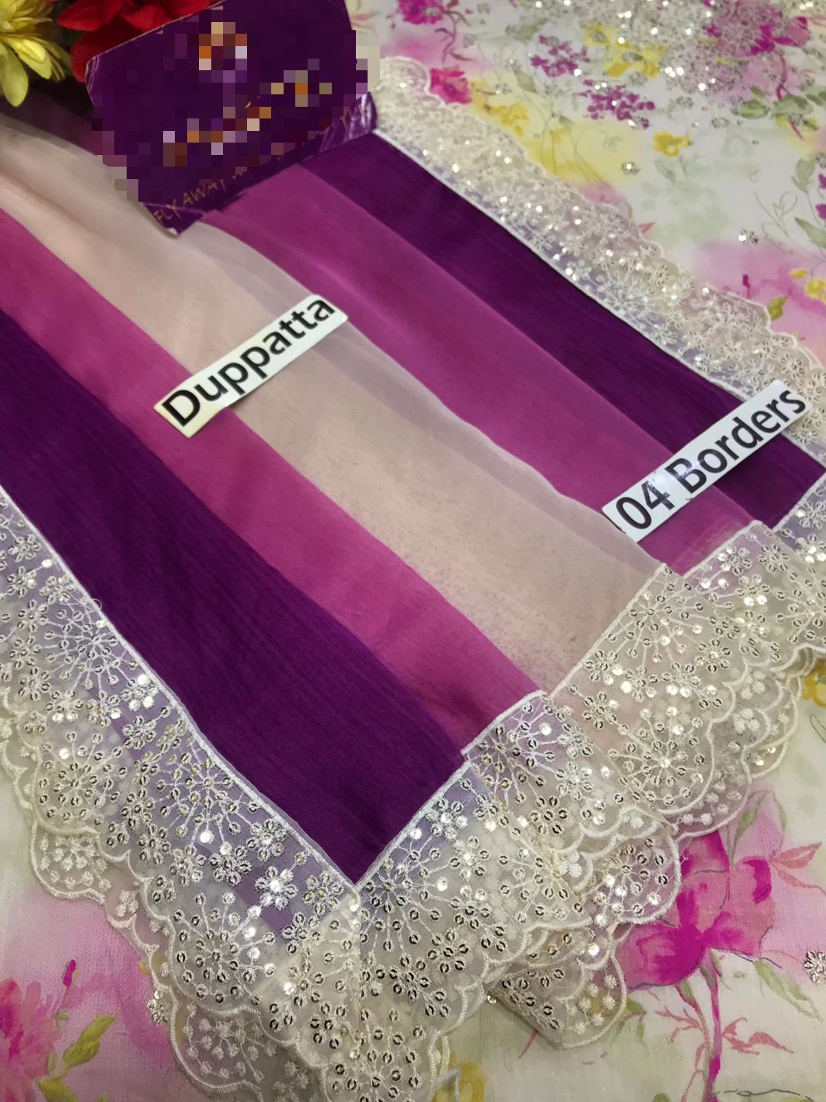 ▪️Heavy Embroidered Tie n Die Chiffon Dupatta With 04 Sides Cut work Border ready to wear dupatta