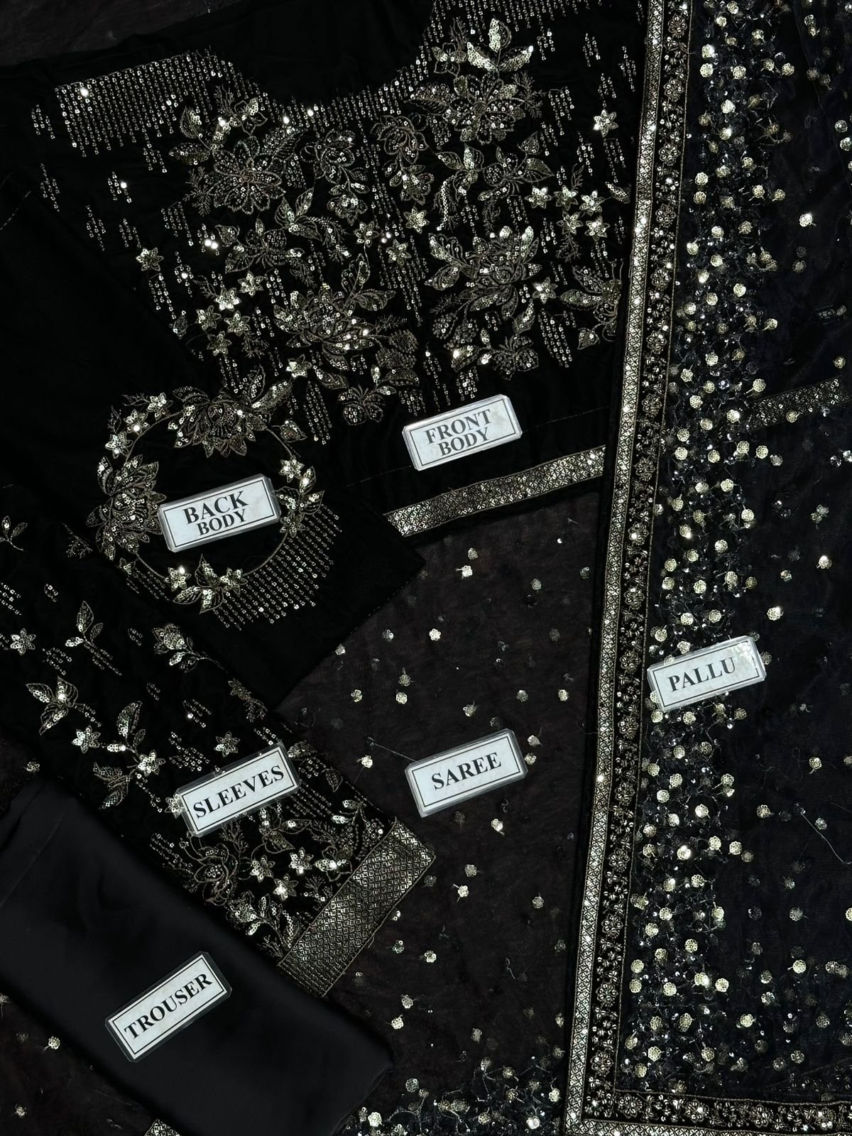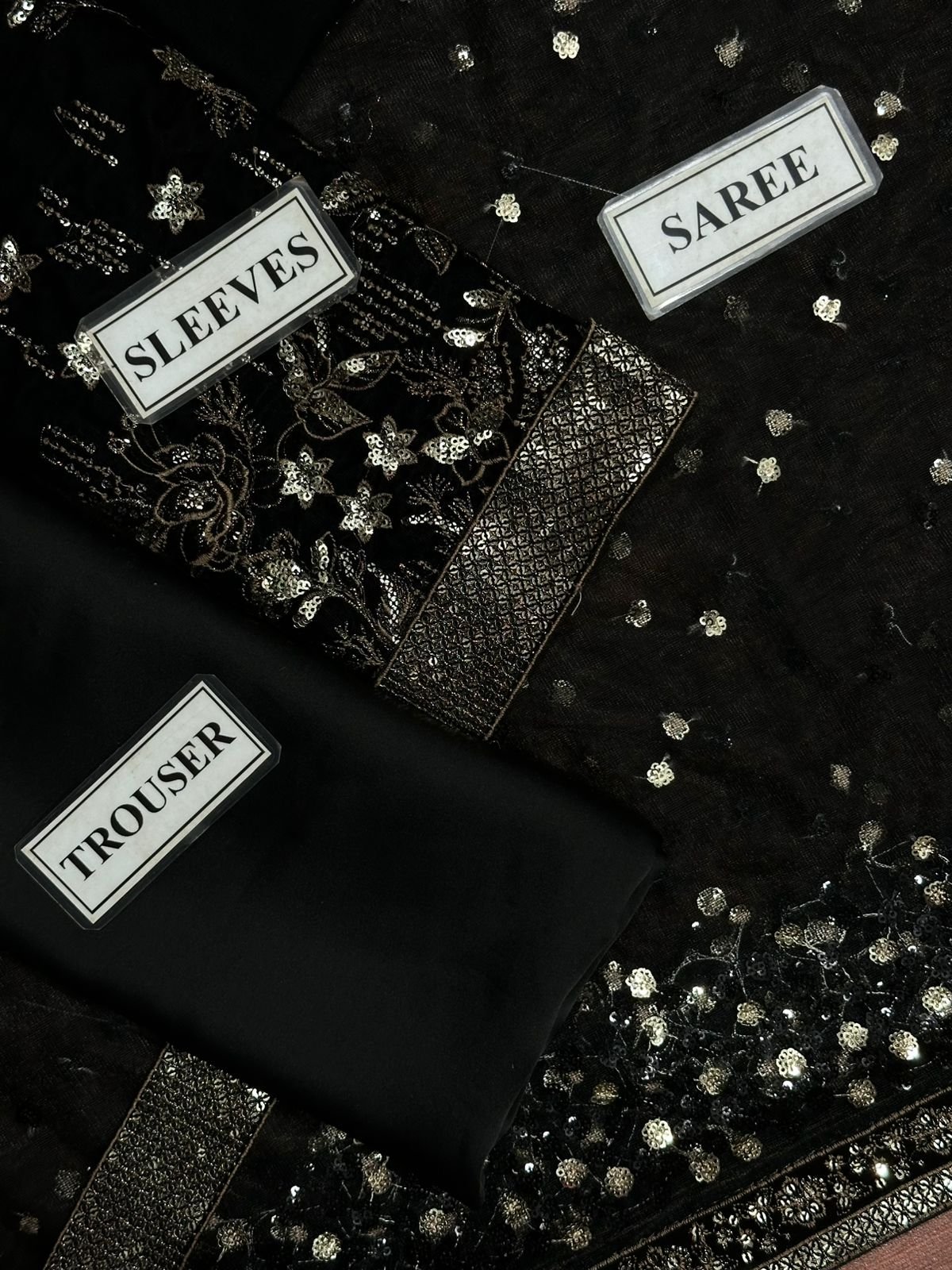 FABRIC Body & Sleeves: Velvet Saree: NET Trouser: SATIN SILK