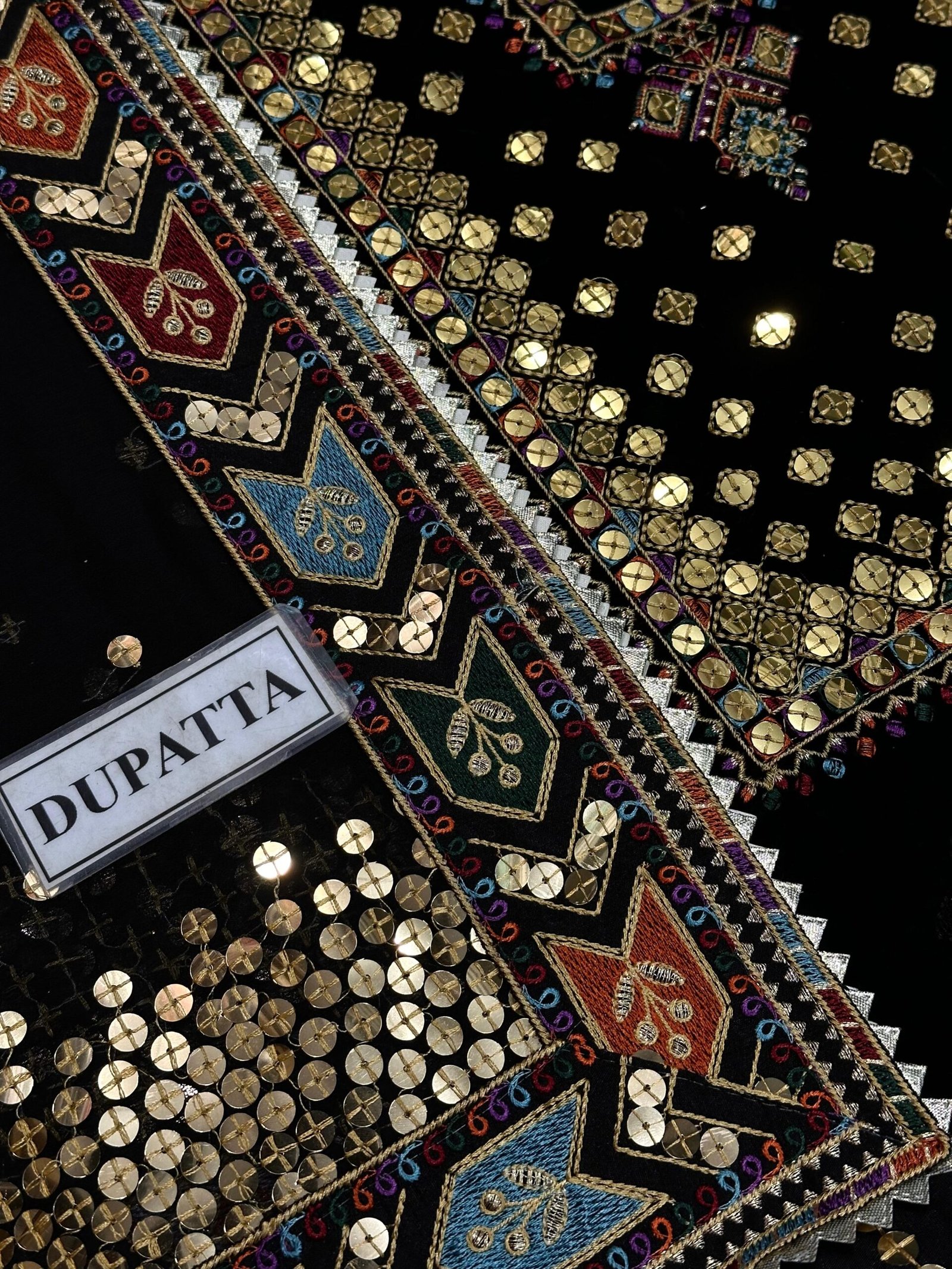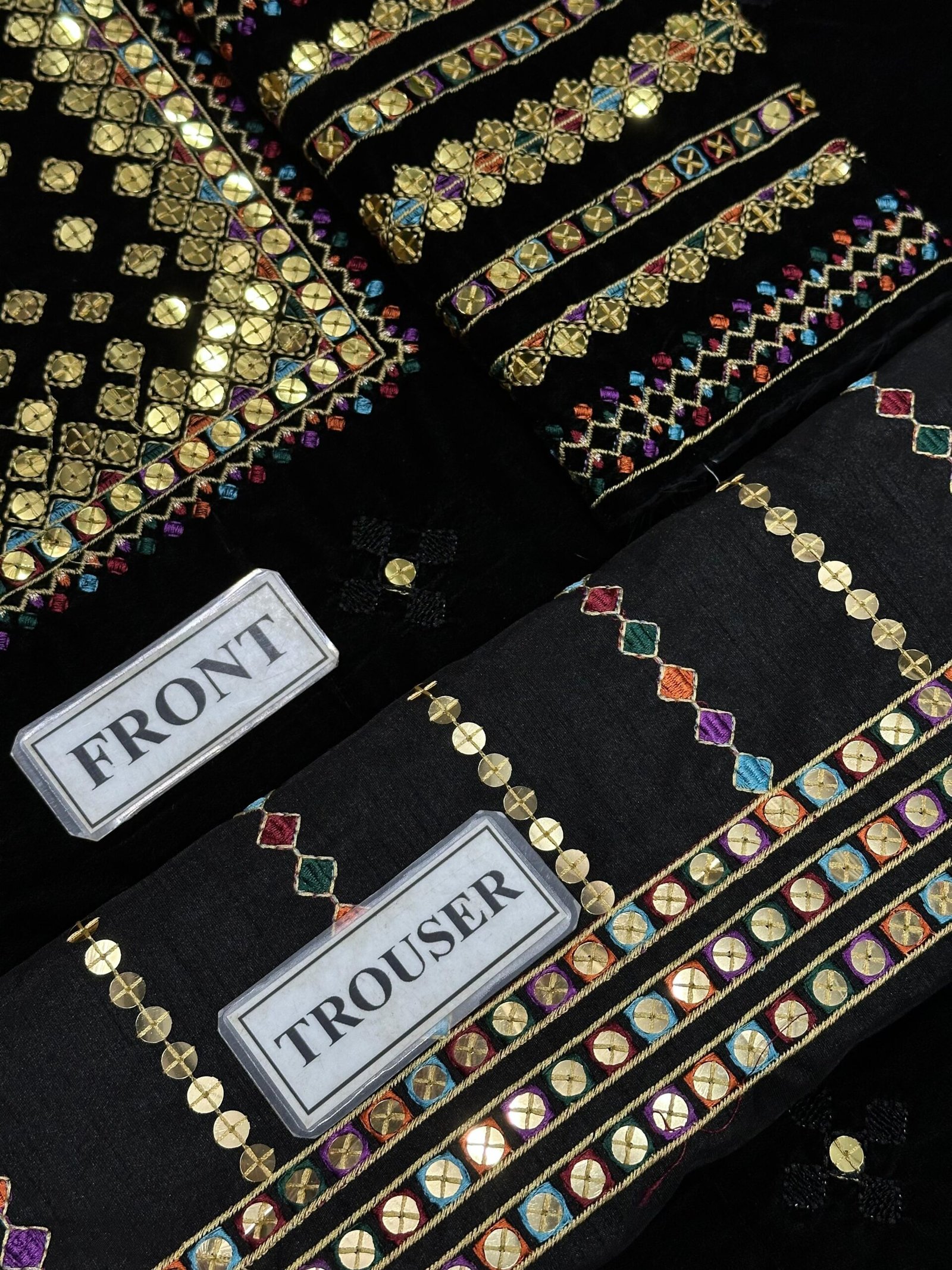 FABRIC Shirt: VELVET Dupatta: CHIFFON Trouser: RAW SILK