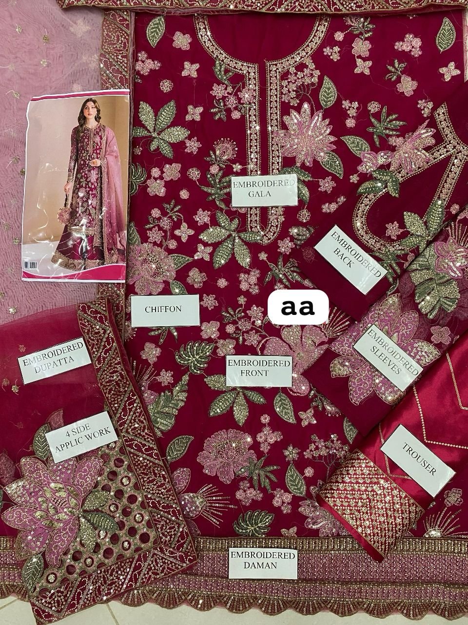 WEDDING CHIFFON DRESS 3PEC(UNSTICHED)