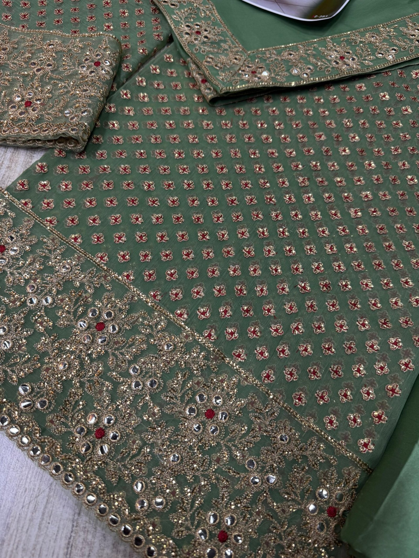•Organza Sequence & Foil Embroidered Front Daman Border
