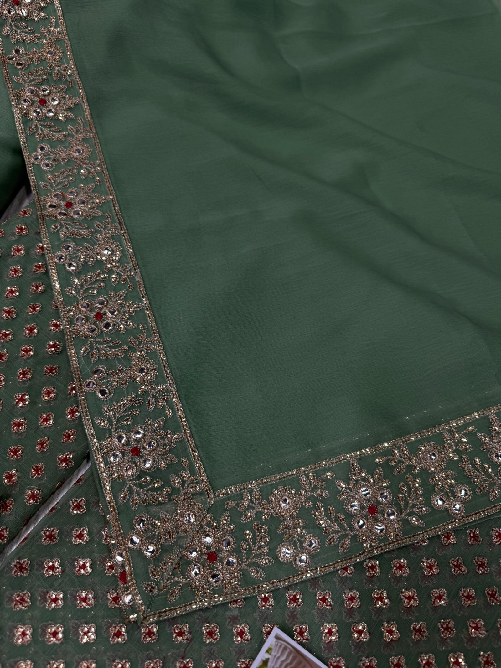 •Semi Pure Chiffon Sequence Embroidered Sleeves