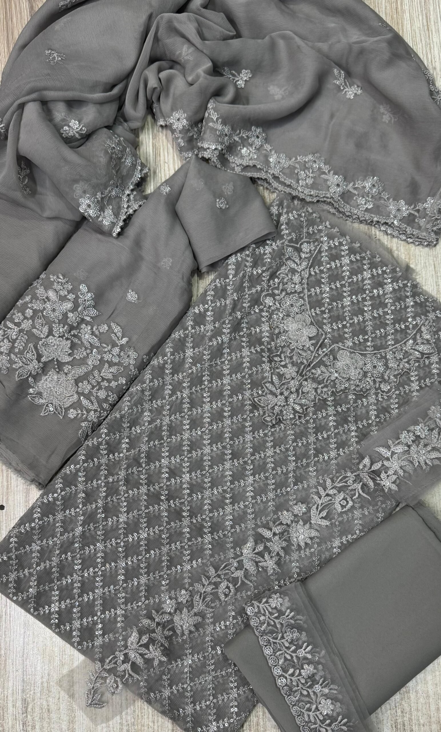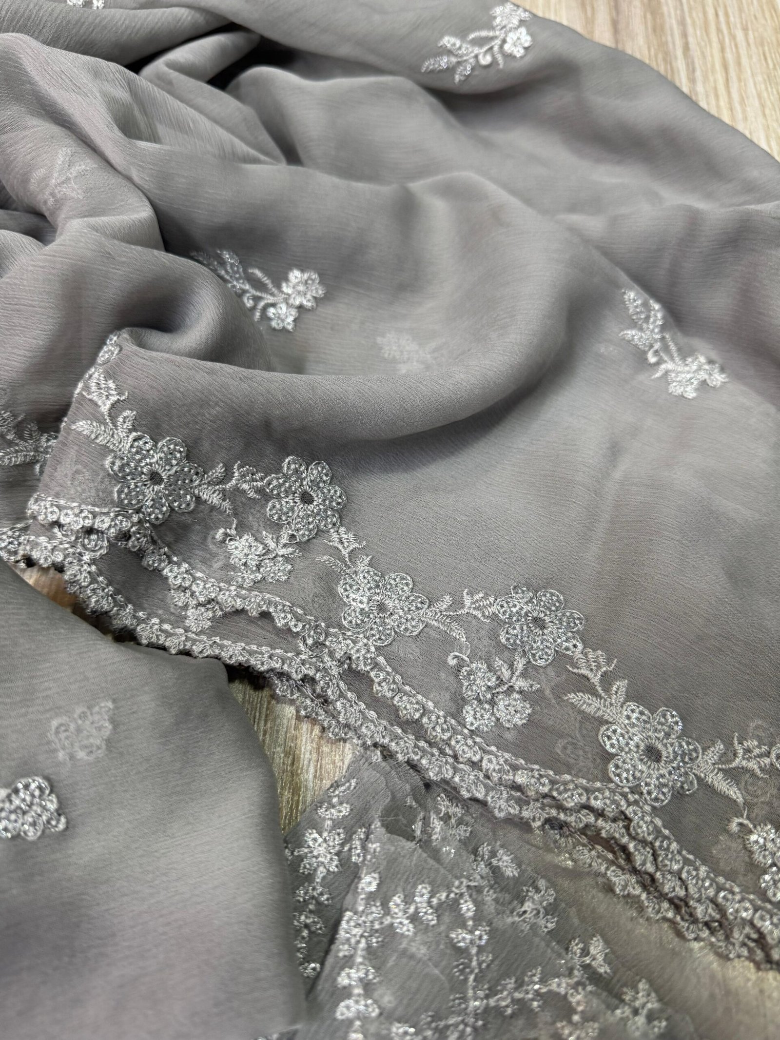 •Semi Pure Chiffon Sequence Embroidered Dupptaa