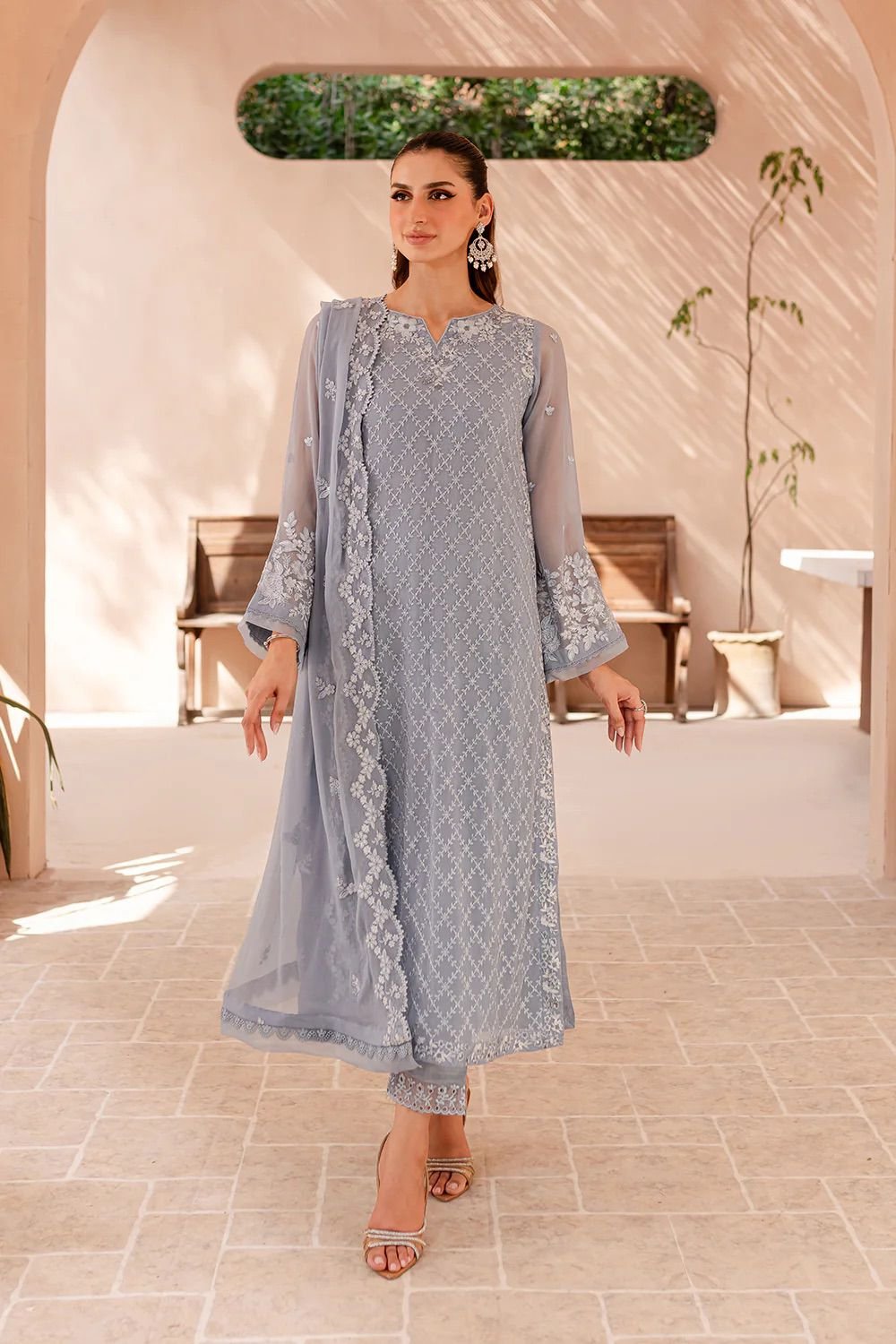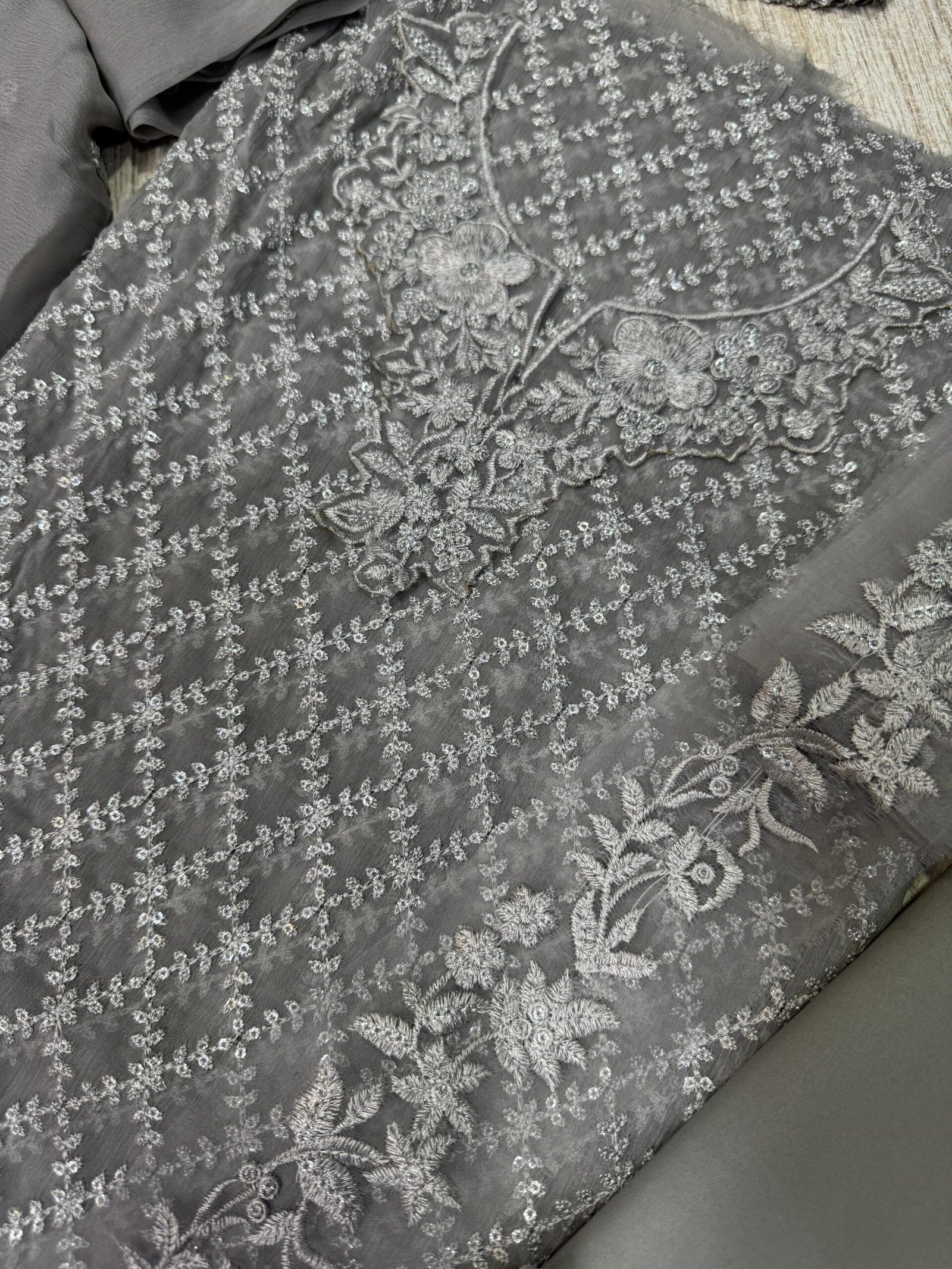 •Semi Pure Chiffon Sequence Embroidered Sleeves