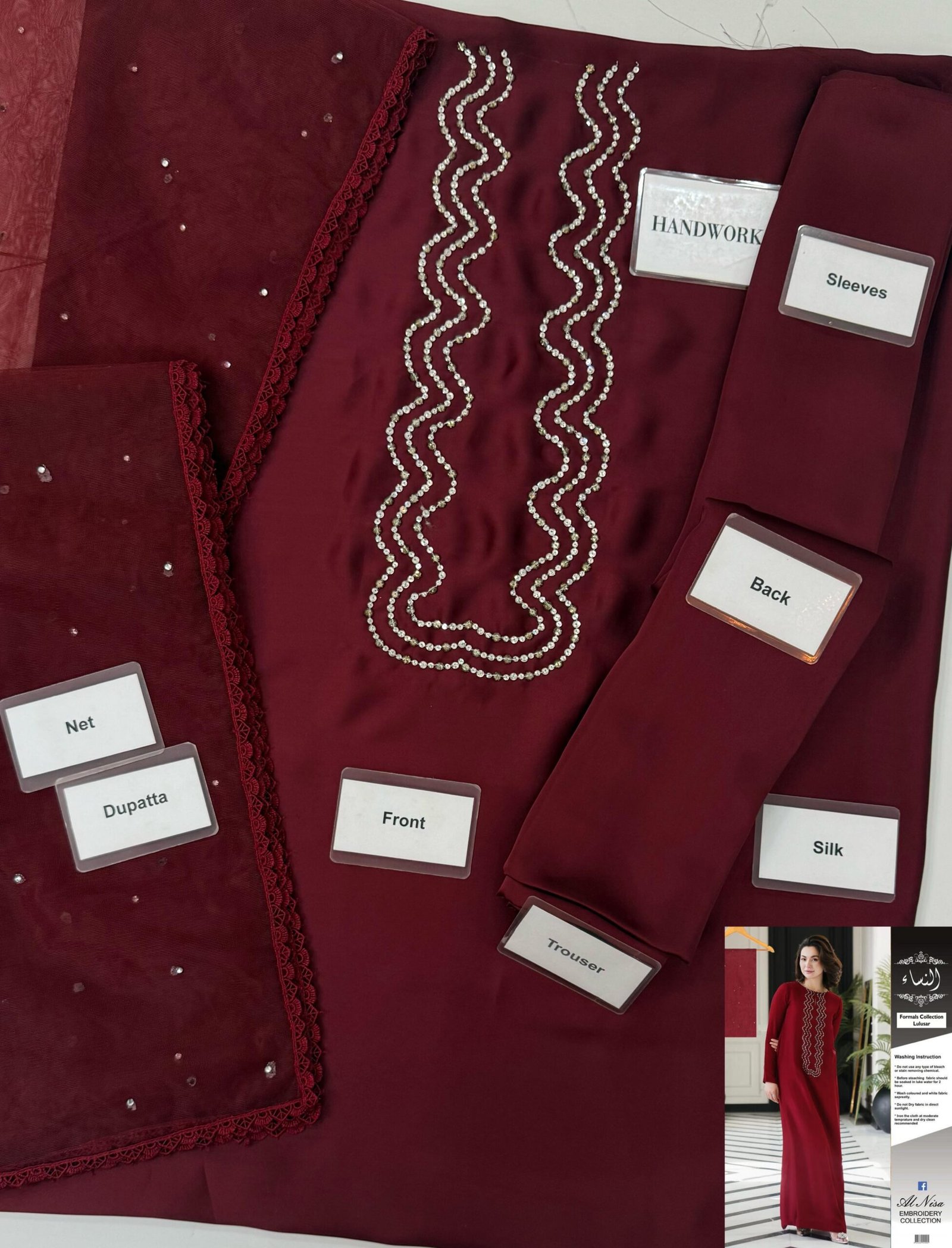 ☆SAMAAL LONG Shamoz Silk Hand Embellished 3 Piece Dress – J0124☆