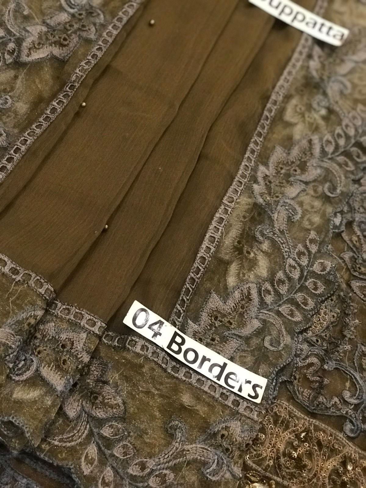 Heavy Embroidery Chiffon Dupatta with 04 Side Heavy Embroidered Cut Work Borders and
