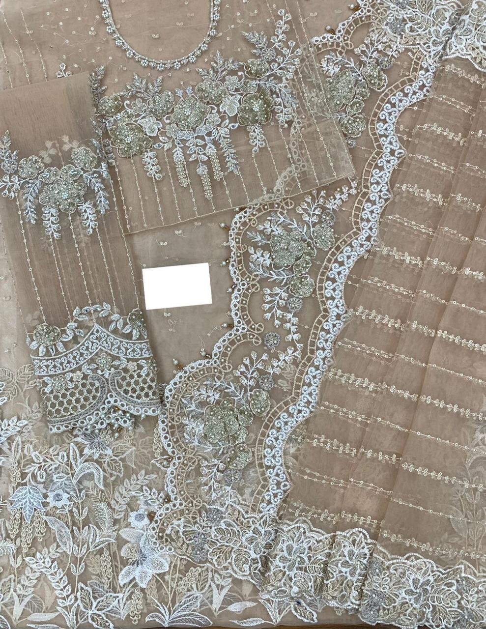 Fully Heavy Embroidered Net Front or Back With Cut Work Border