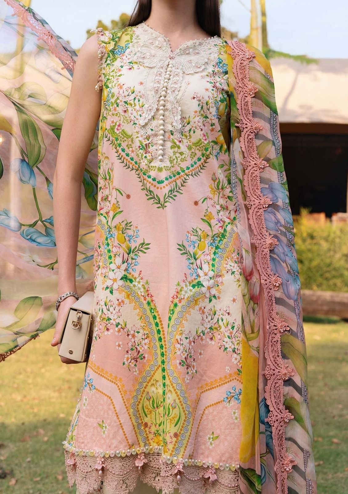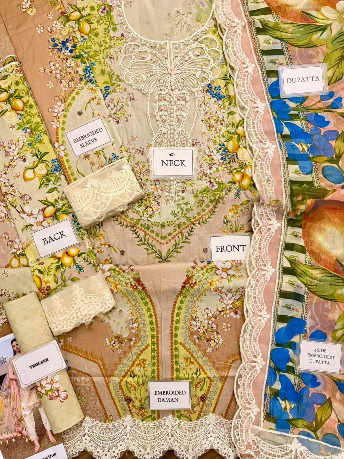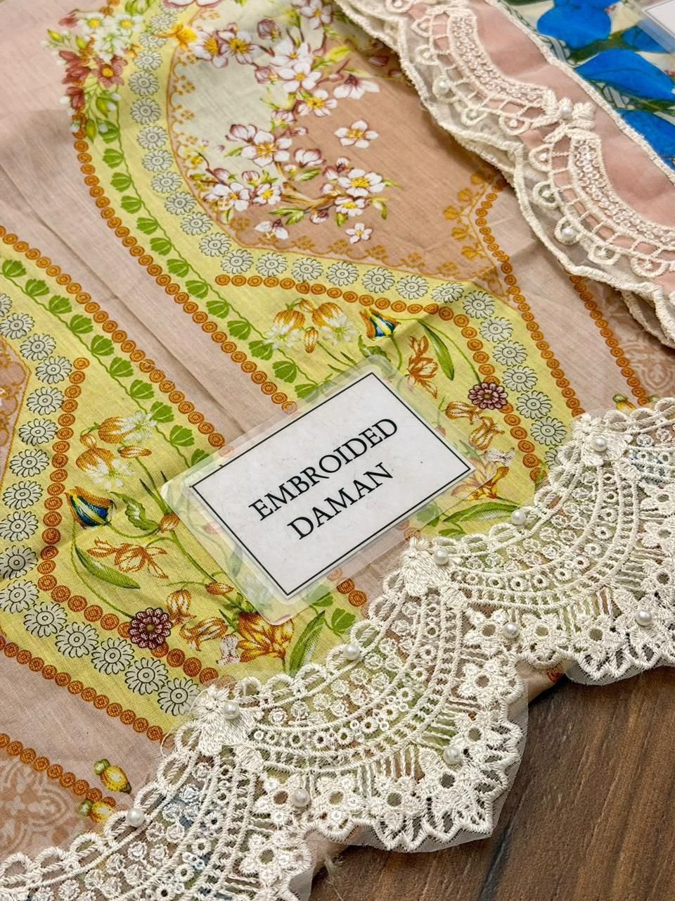 printed lawn front with fully heavy embroidered neckline with fully beats work with heavy embroidered spengle work daman boarder with beats work
