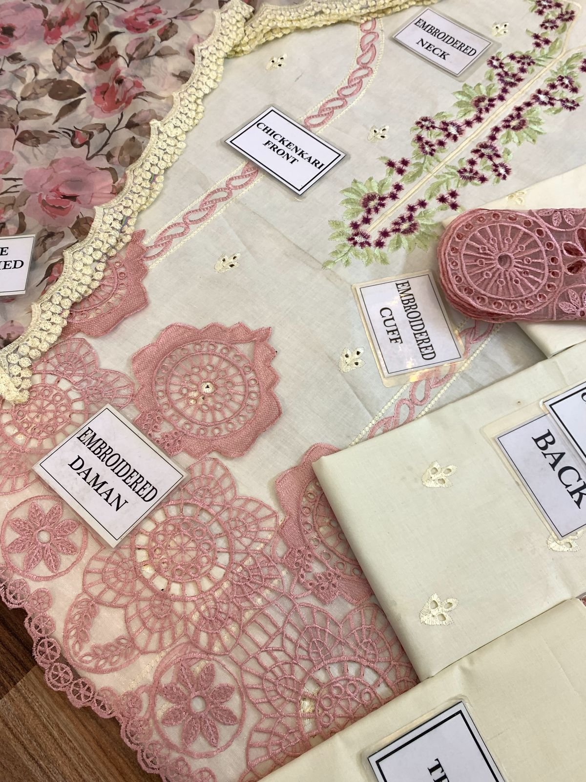 HEAVY EMBROIDERED CHICKENKARI COTTON FRONT WITH EMBROIDERED CHICKENKARI DAMAN PATCH