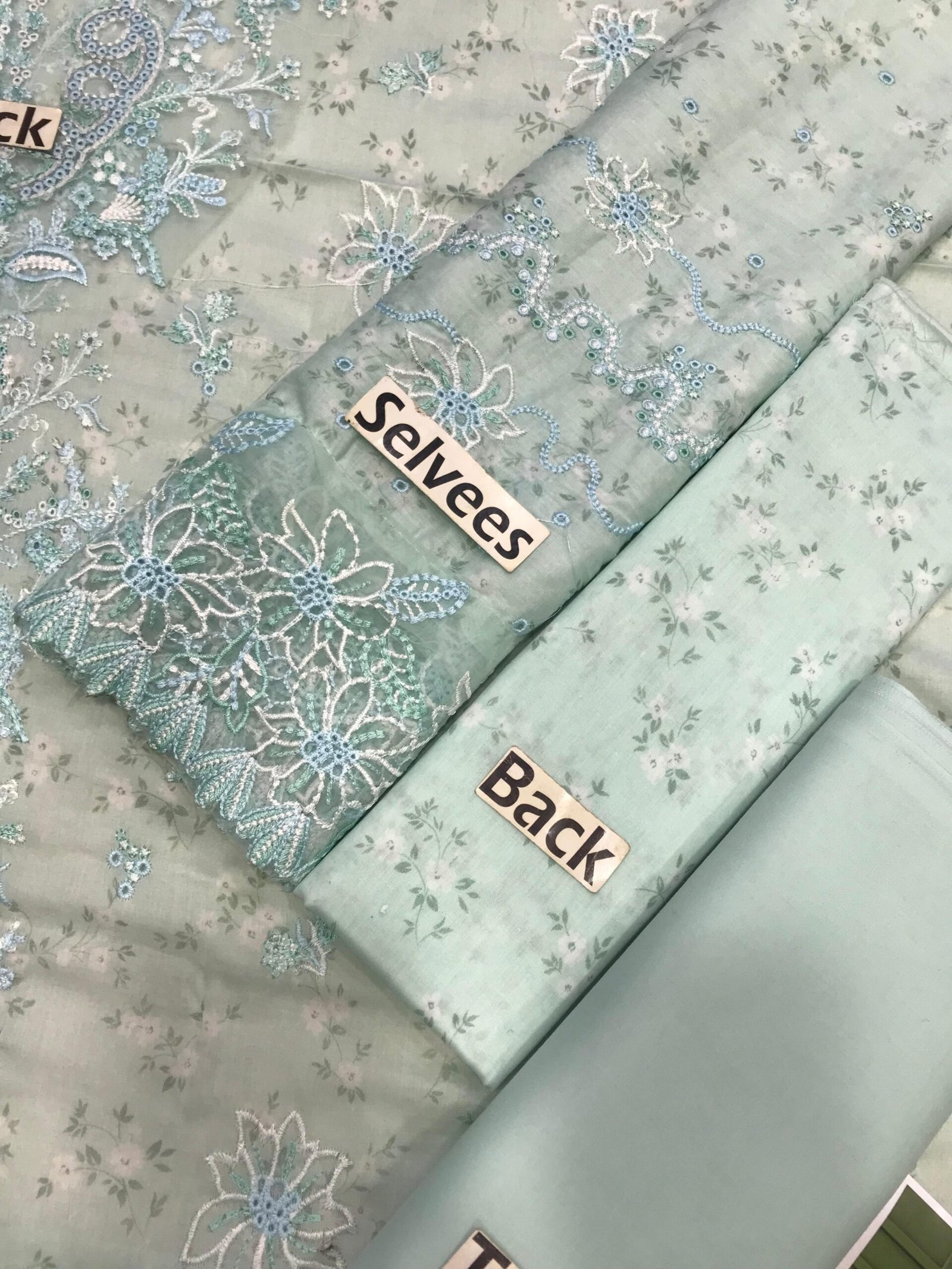 ▪️Heavy Embroidered Lawn Slevees With Chicken kari work or Embroidered Cuff on Fabric with Cut work