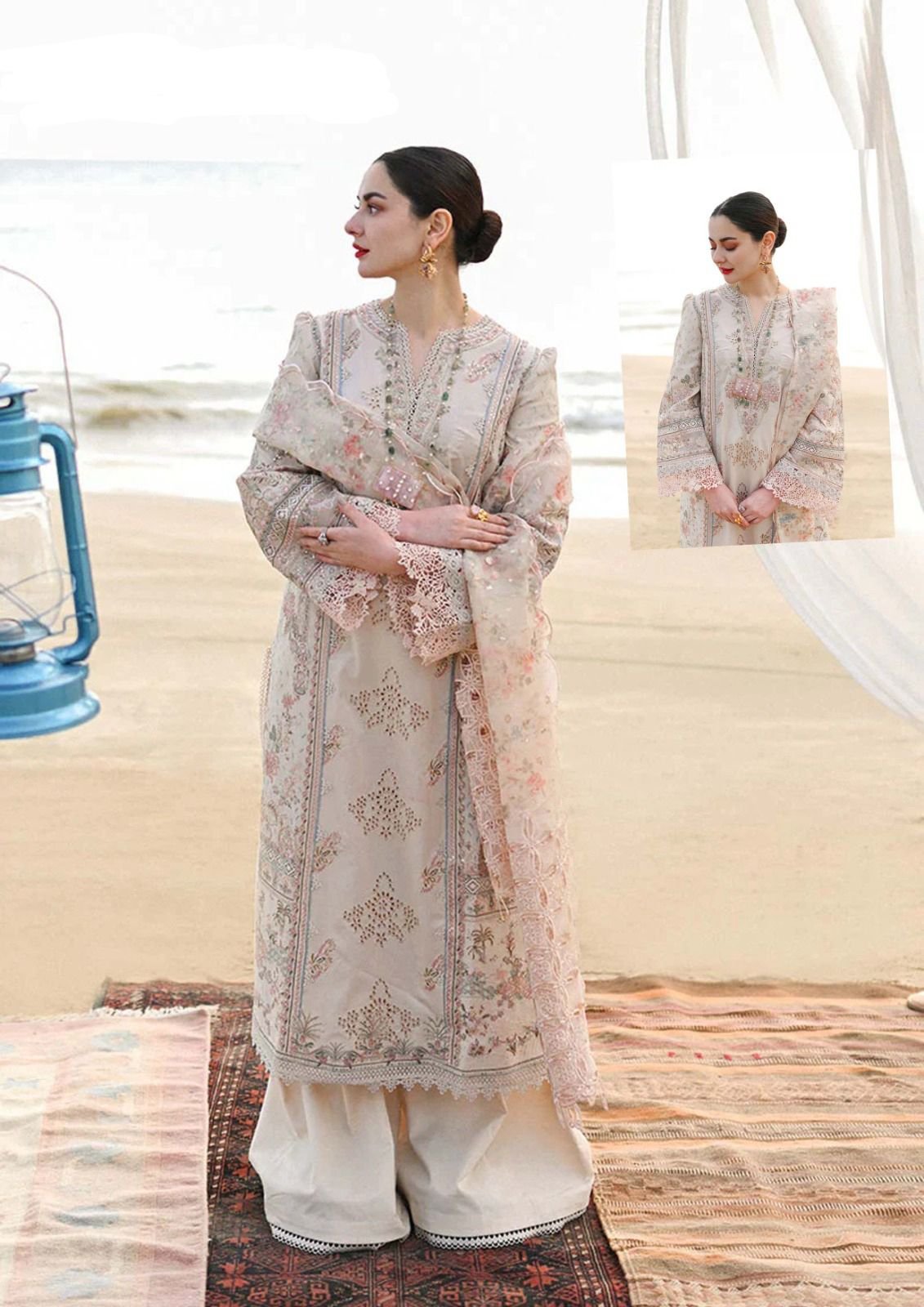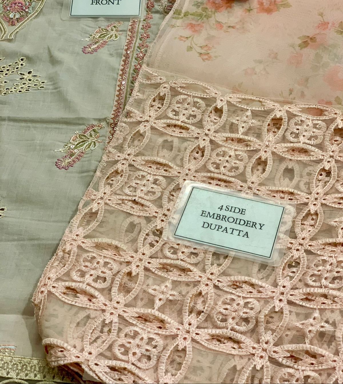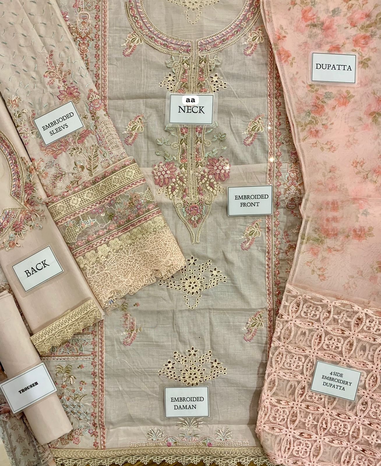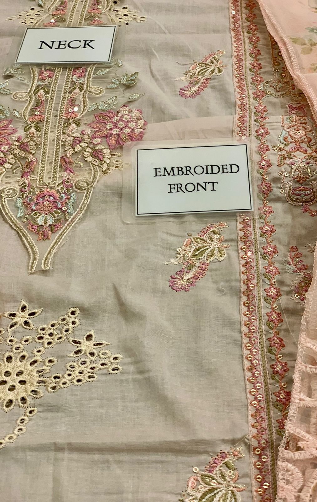 plain lawn back with heavy embroidered spengle work back bunch with heavy embroidered back daman lace
