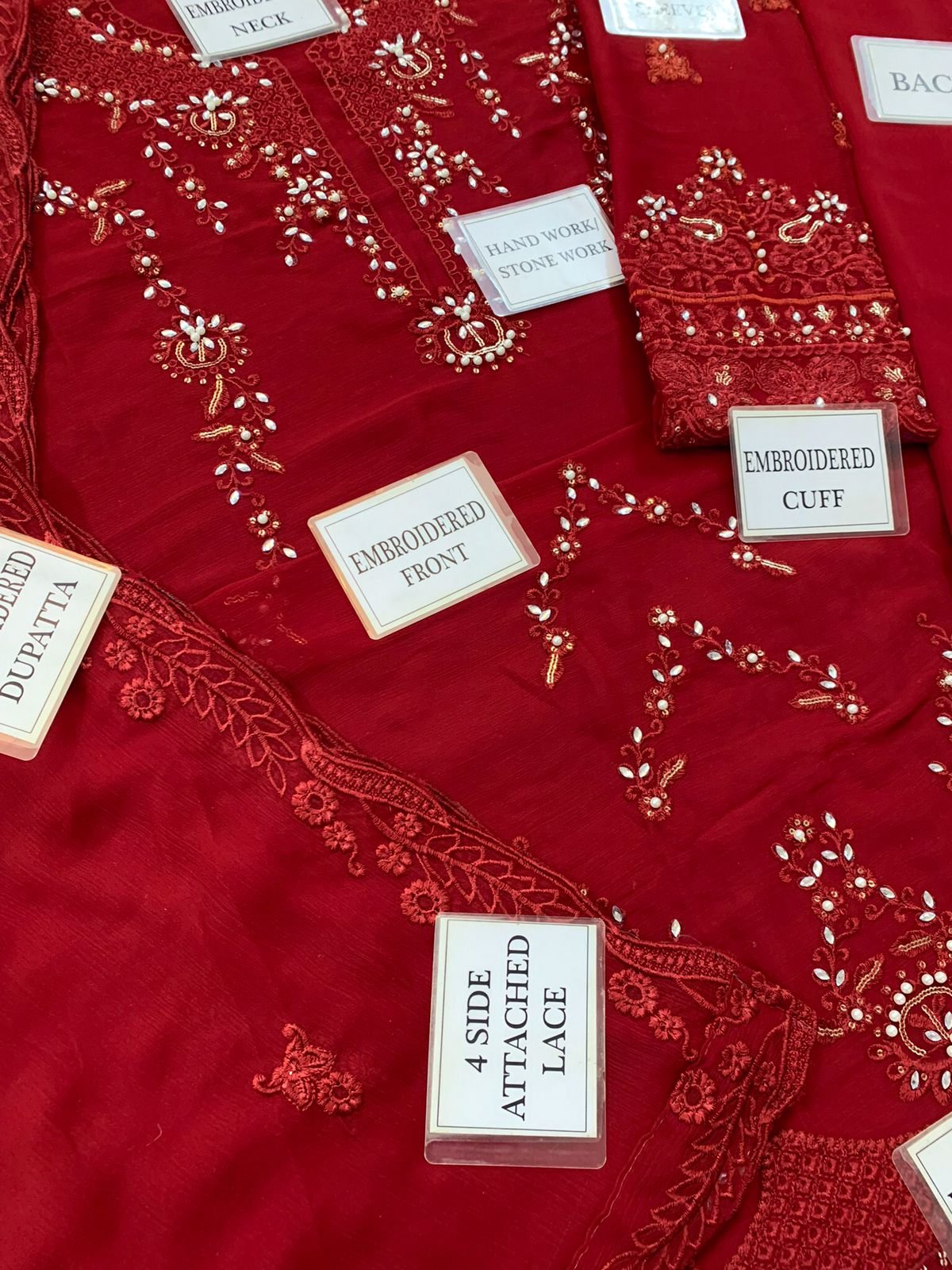 HEAVY EMBROIDERED CHIFFON FRONT EMBELLISHED WITH HANDWORK & STONE WORK WITH EMBROIDERED CUTWORK DAMAN PATCH EMBELLISHED WITH HANDWORK & STONE WORK
