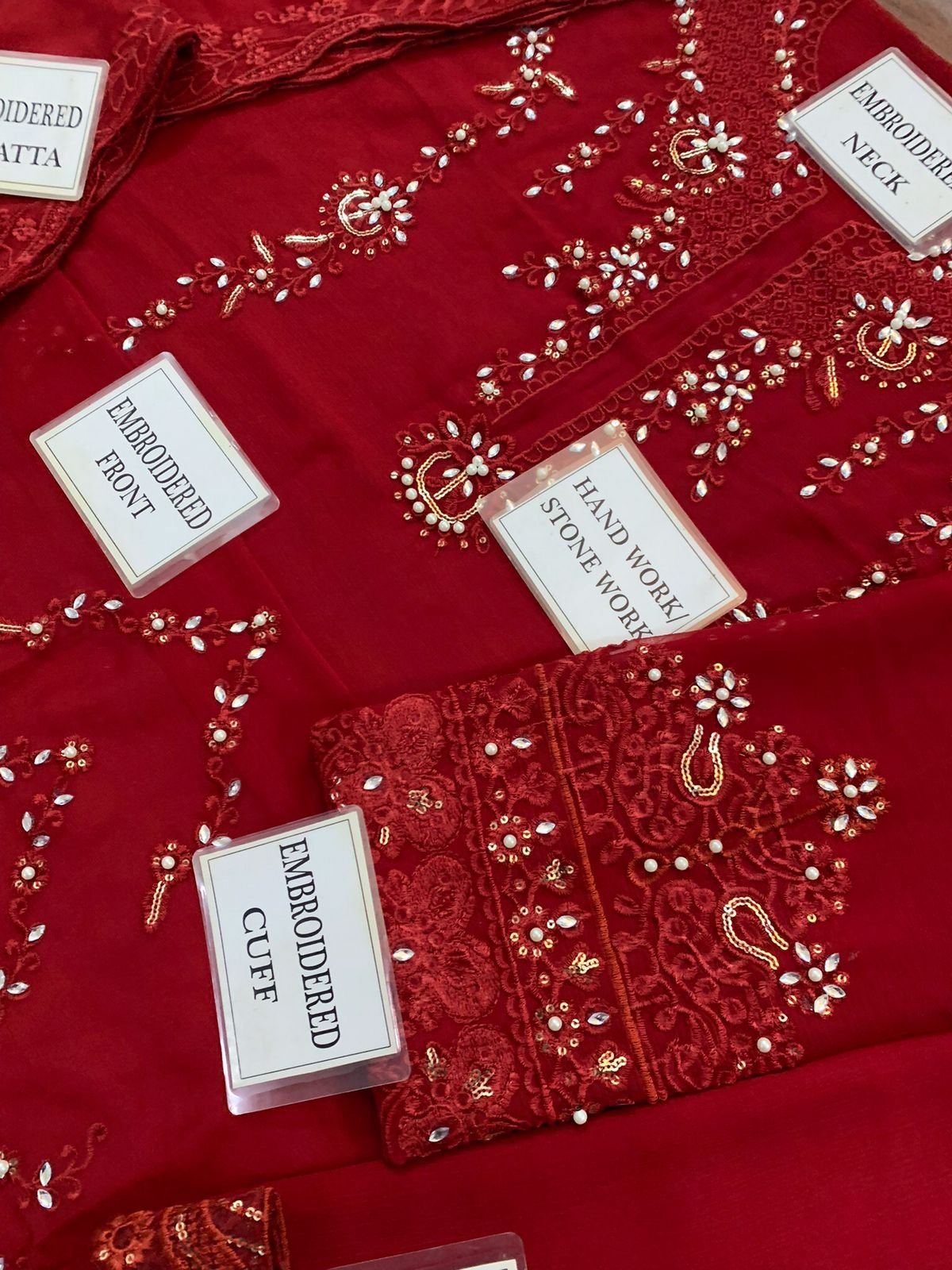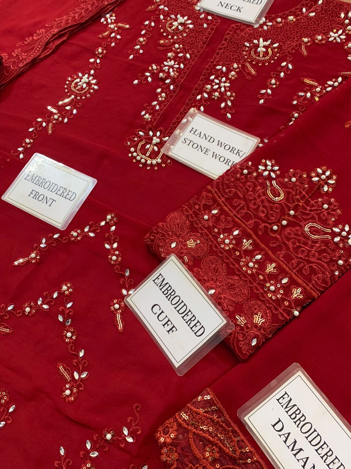 HEAVY EMBROIDERED CHIFFON SLEEVES EMBELLISHED WITH HAMDWORK & STONE WORK WITH HEAVY EMBROIDERED CUFF ON FABRIC