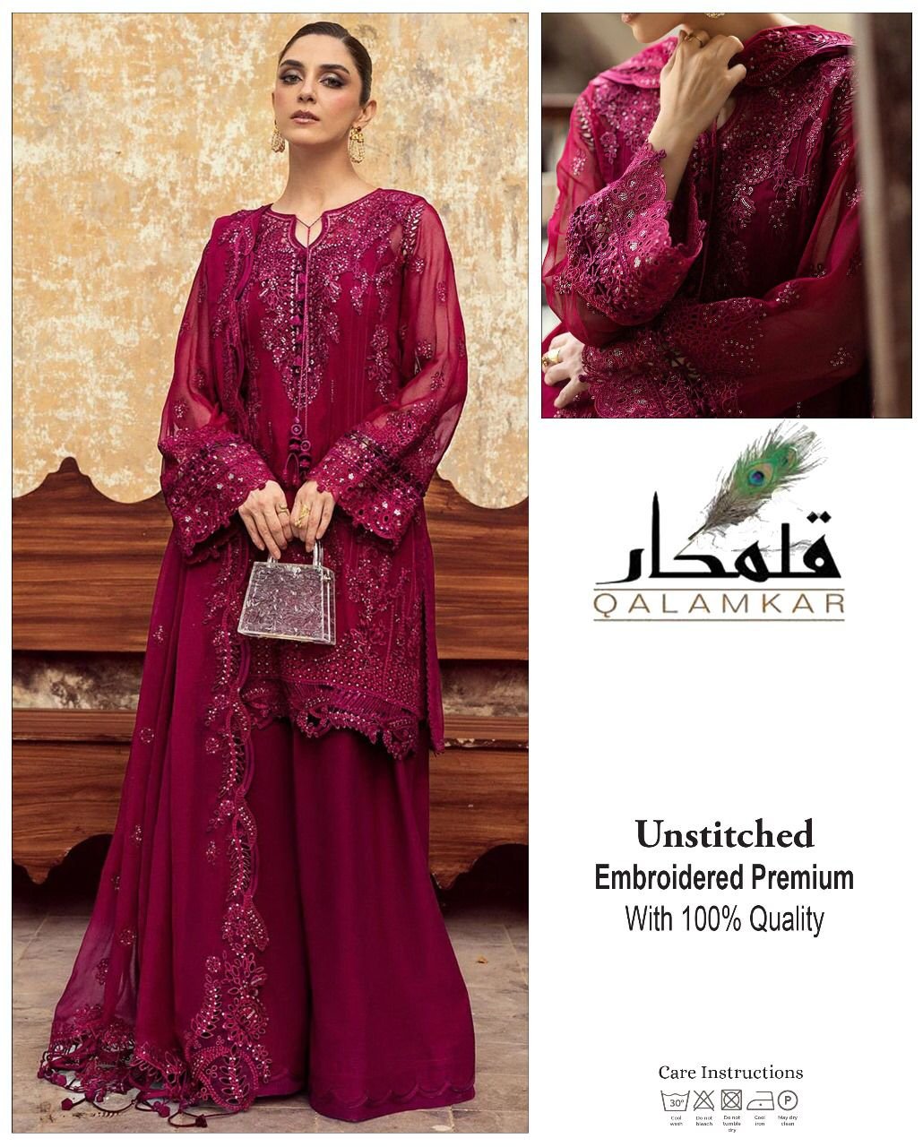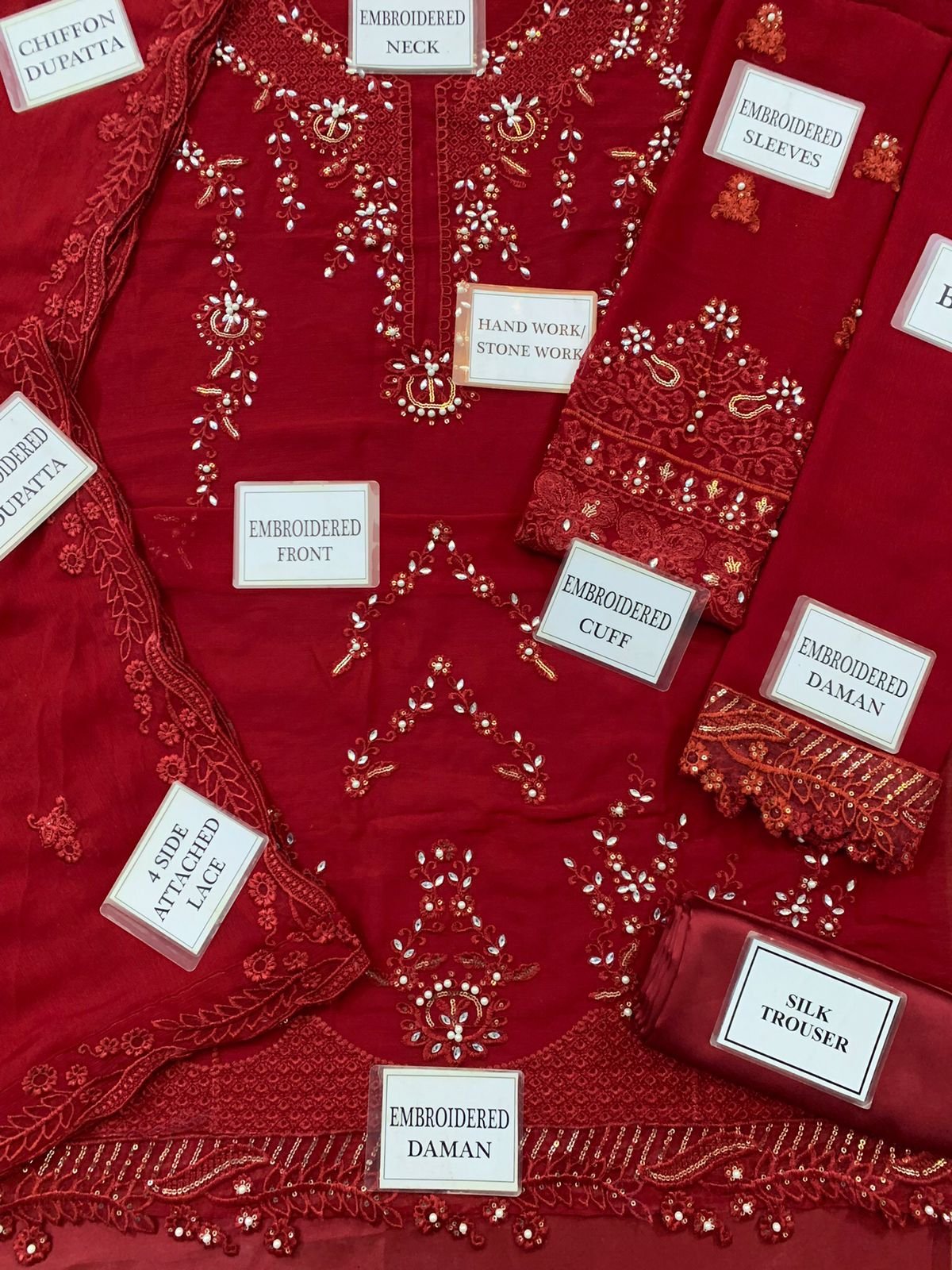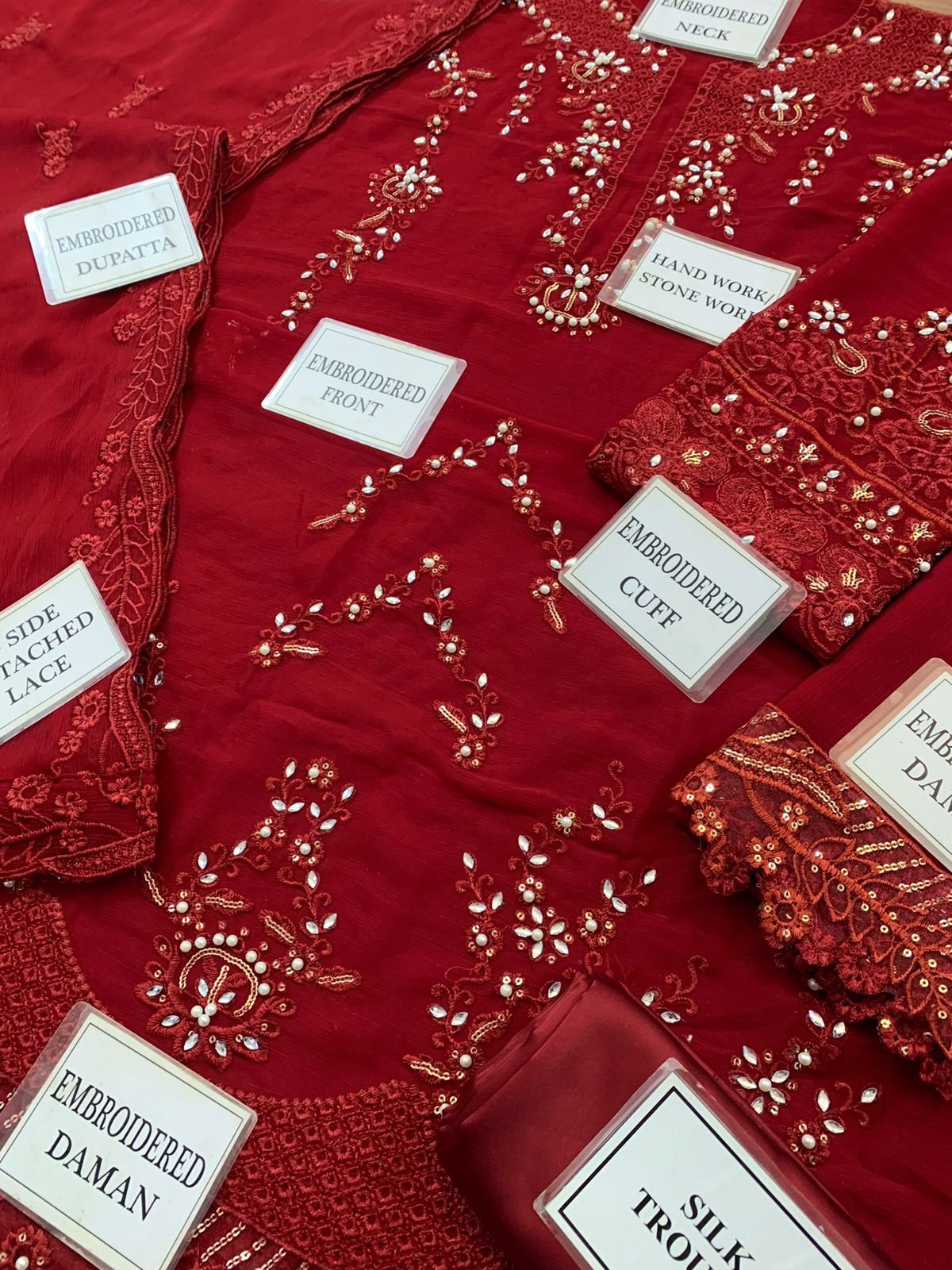 HEAVY EMBROIDERED CHIFFON SLEEVES EMBELLISHED WITH HAMDWORK & STONE WORK WITH HEAVY EMBROIDERED CUFF ON FABRIC