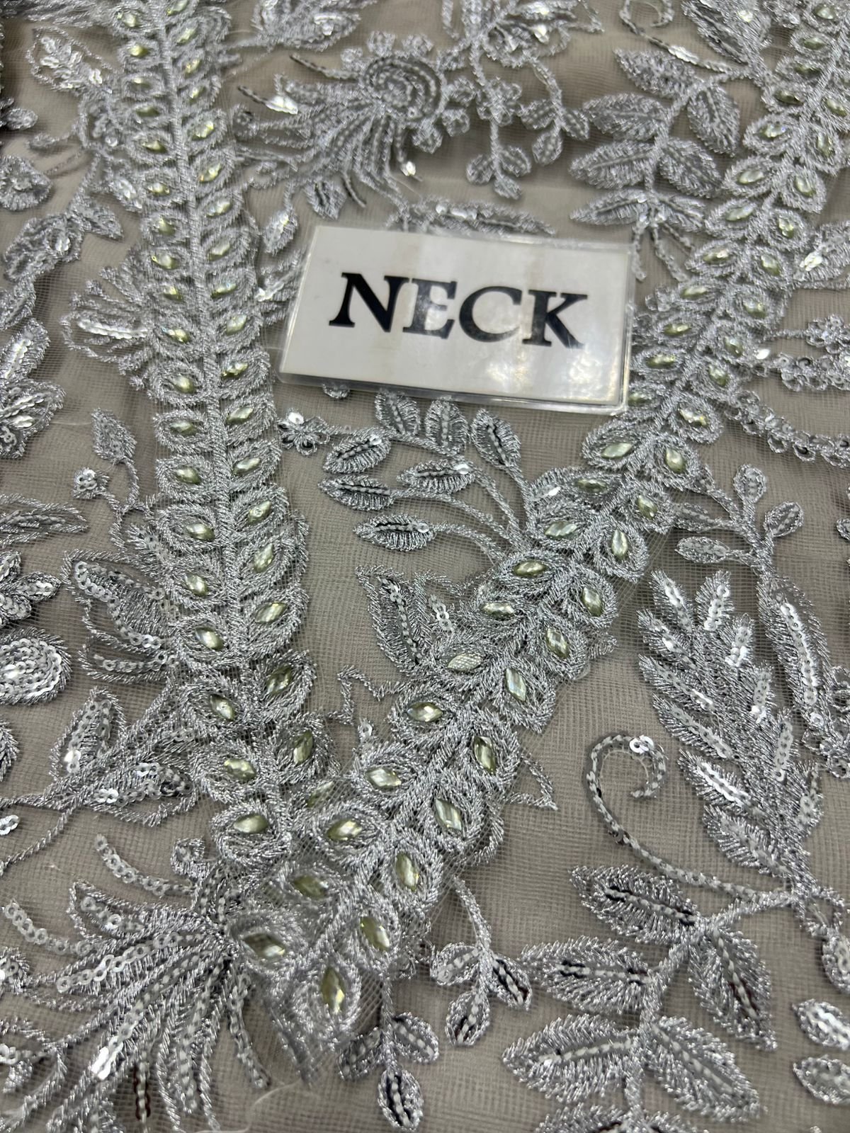 Fully Embroidered Net back with heavy embroidered spengle work back daman boarder on fabric